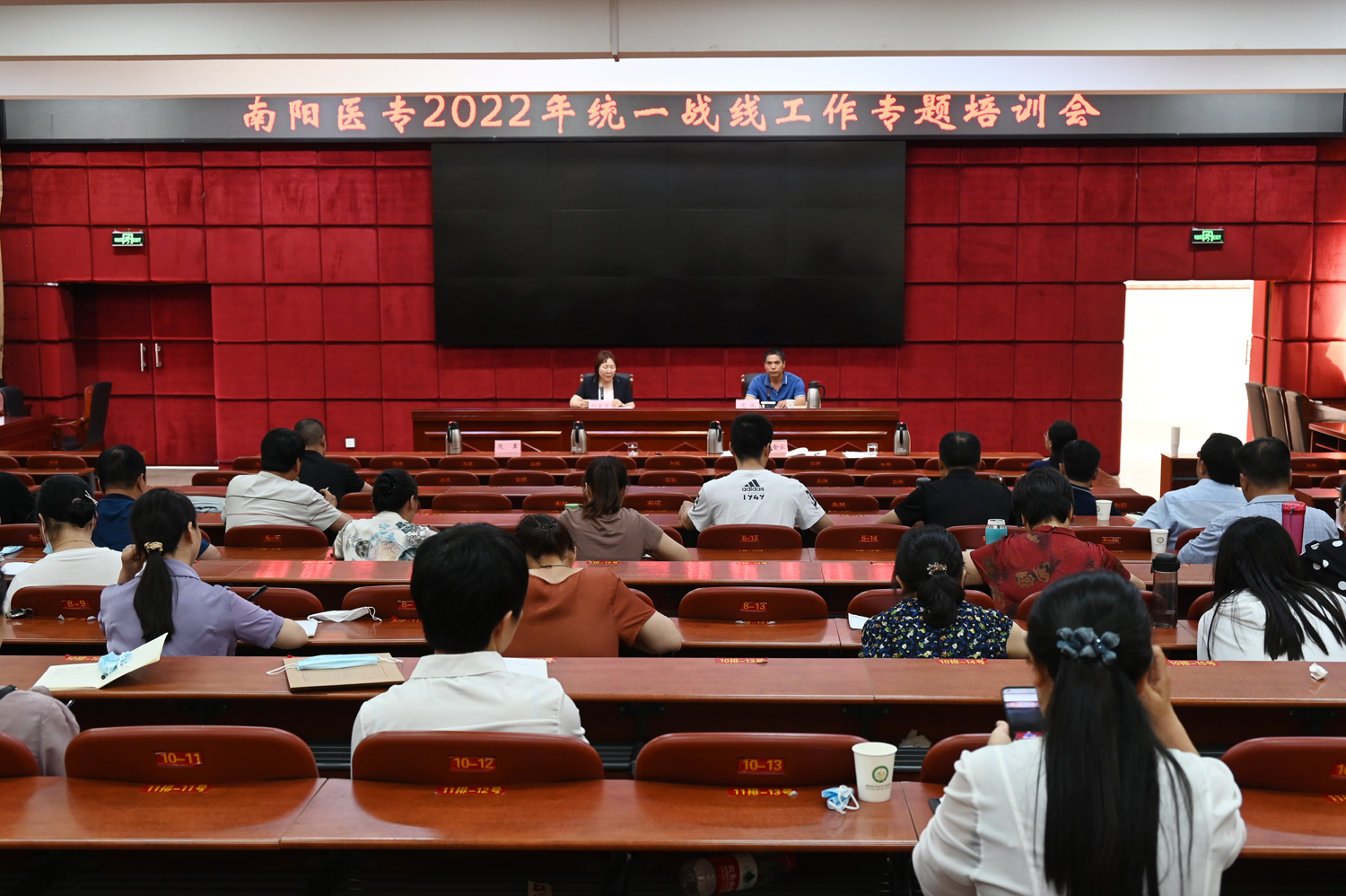 本网讯(文/组织、统战部 李梦华)为进一步贯彻落实学校《关于开展“观念能力作风建设年”活动的实施方案》《南阳医专关于实施教师素质提高计划指导意见的通知》精神,围绕学校“1233”工作布局,提升我校党员干部对新形势下统战工作重要性的理解认识,全面了解党的统战方针政策,铸牢中华民族共同体意识,提高统战工作能力。7月1日上午,在图书馆5楼报告厅举行了南阳医专2022年统一战线工作专题培训会,邀请南阳市委统战部副部长李军,南阳市国安局政保支队队长周斌作专题辅导。学校中层正职干部、校本部党总支(直属支部)统战委员、基层党支部书记,三所直属附属医院分管统战的班子成员、党办主任,基层党支部书记或统战委员参加培训,在家的校领导班子成员出席培训会。会议由校党委委员、纪委书记刘金云主持。