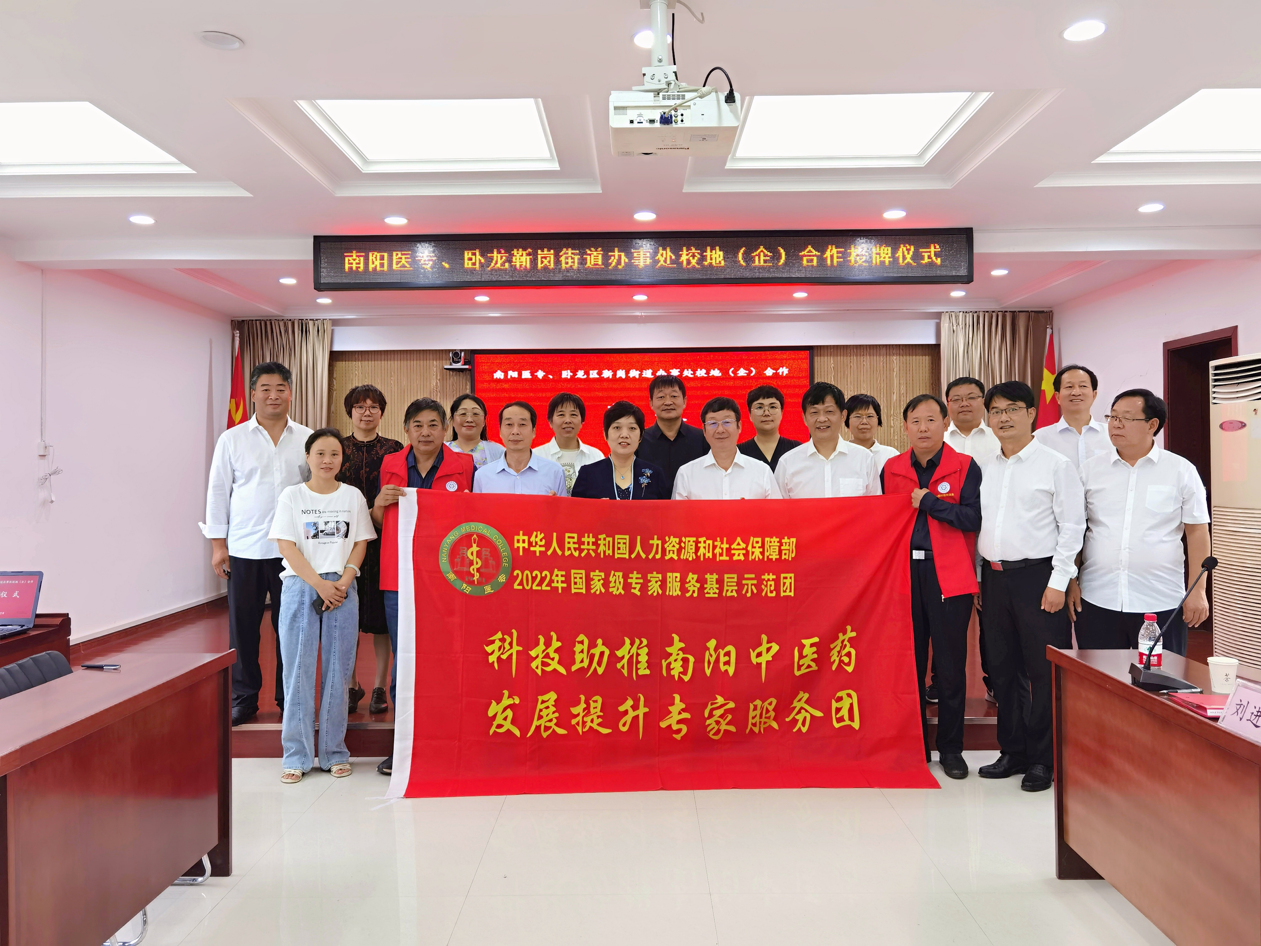 签约仪式上,范真副校长为靳岗街道办事处授牌“人社部科技助推河南南阳中医药发展提升专家服务团服务基地”。靳岗街道办事处主任王可、我校专家服务团代表、药学系主任袁国卿教授代表校地双方签署了合作协议。教务处处长刘荣志及各服务分团团长参加了签约仪式。