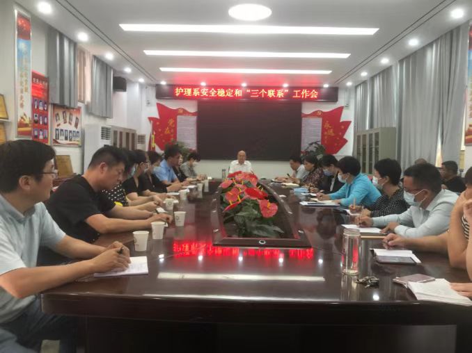 本网讯(文/护理系 何红丽)9月30日上午,校党委委员、副校长张胜海带领“三个联系”第四工作组深入护理系指导安全稳定工作,人事处、审计处、图书馆、档案中心相关负责同志陪同,护理系副科级以上干部及全体辅导员参加会议。