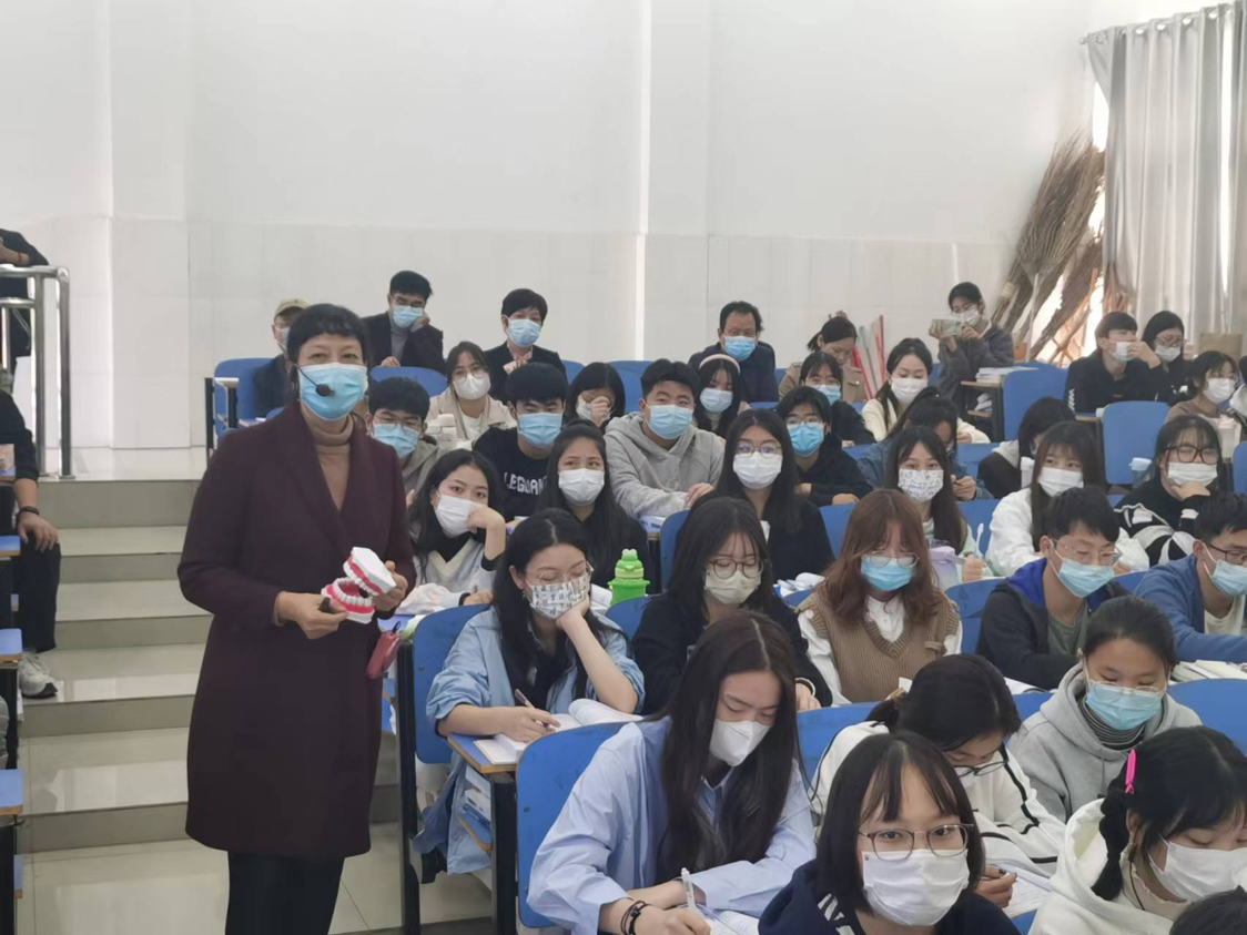 10月11号下午,副校长范真在国际教育学院听取了外教Sita教授《口腔内科学》线上直播授课。结合外教Sita讲解龋齿概念、病因、发病机制、分类等内容,我校口腔专业助教老师戴笑春适时进行总结,引导学生积极参与课堂,保证国外优质教学内容充分引进、消化、吸收。