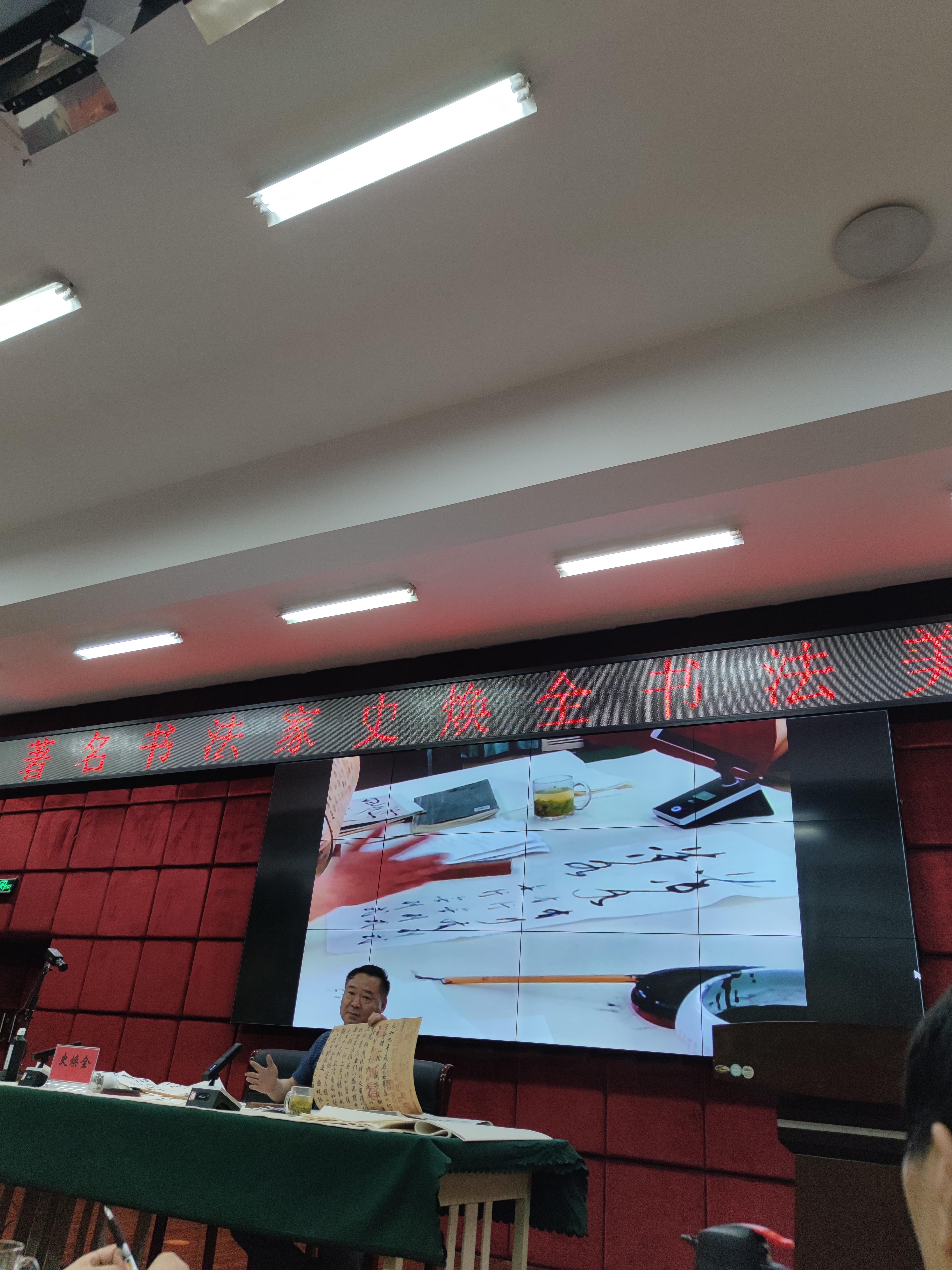 本网讯(文/校团委 庞博)为提高师生艺术修养,助力学生成长成才,5月18日下午,我校邀请著名书法家史焕全教授在图书馆五楼学术报告厅作书法美学学术讲座。学生书法社团、广大师生书法热爱者约三百人聆听受益。