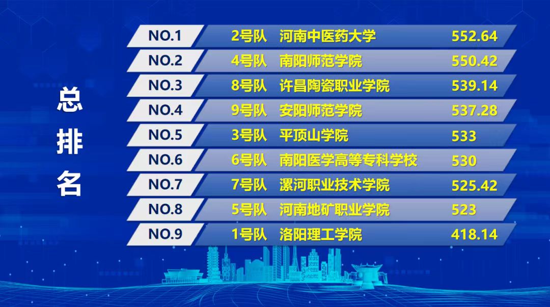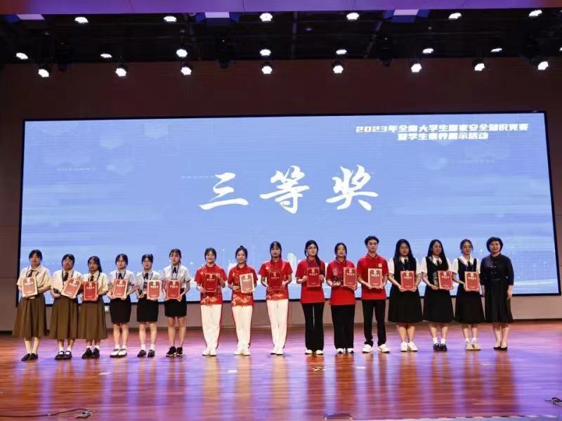本次全省大学生国家安全知识竞赛分为网络竞赛和现场决赛两个阶段,自5月份接到《中共河南省委教育工委办公室 河南省教育厅办公室关于开展2023年全省大学生国家安全知识竞赛暨学生素养展示活动的通知》后,校党委高度重视,法制办统筹安排,各院(系)精心组织,校团委、马院和公教部给予了大力支持,最终我校“仲景学子战队”成功入围全省本专科九强战队。在总决赛中,我校代表队素养展示环节获专科第一名、总排名全省第六名,最终荣获全省大学生国家安全知识竞赛暨学生素养展示活动三等奖和优秀组织奖。