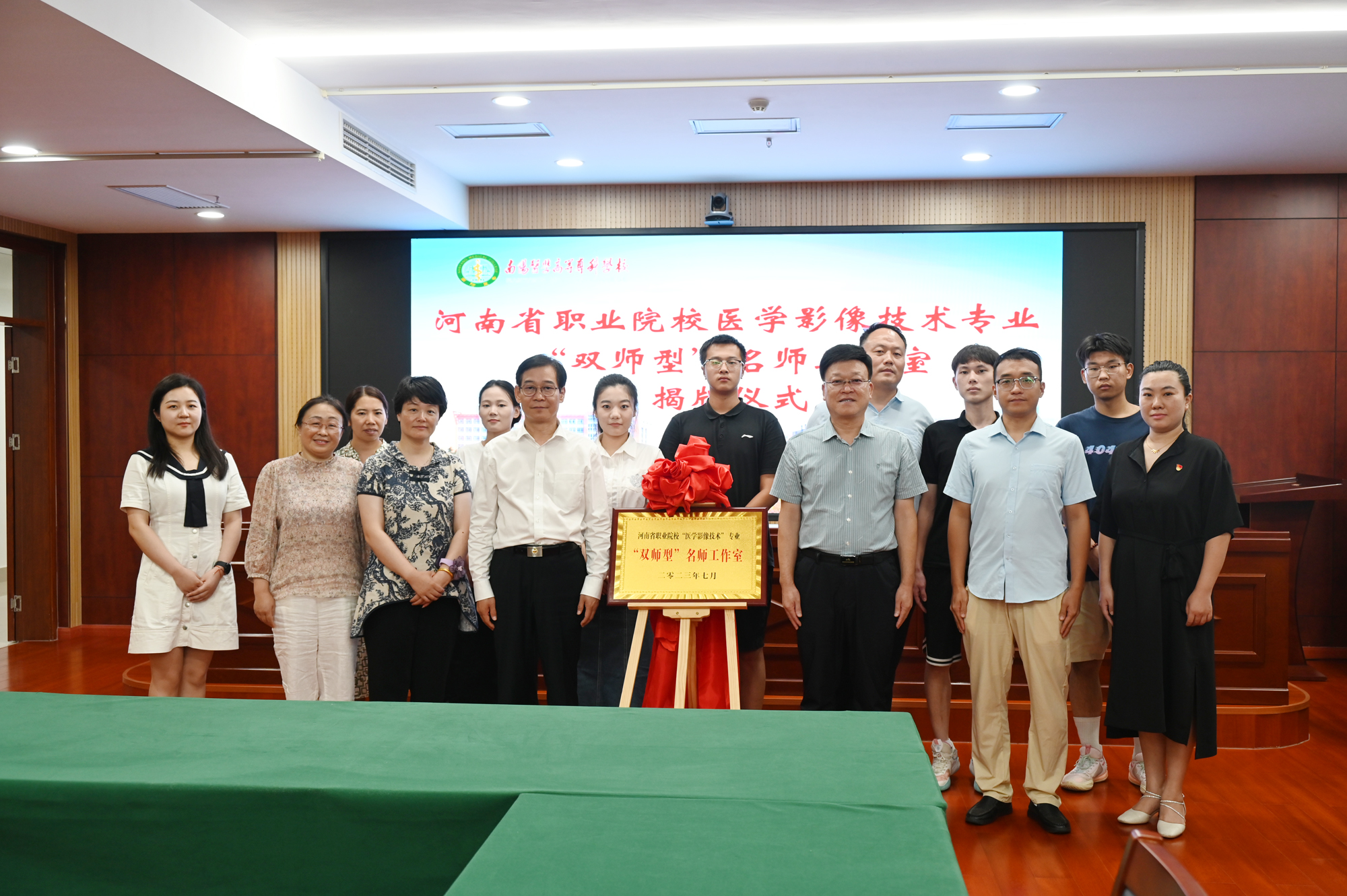 柳明伟和李宏军共同为“河南省职业院校医学影像技术专业‘双师型’名师工作室”揭牌。李宏军教授向我校赠送《中国传染病放射学发展简史(22周年)》纪念书册。