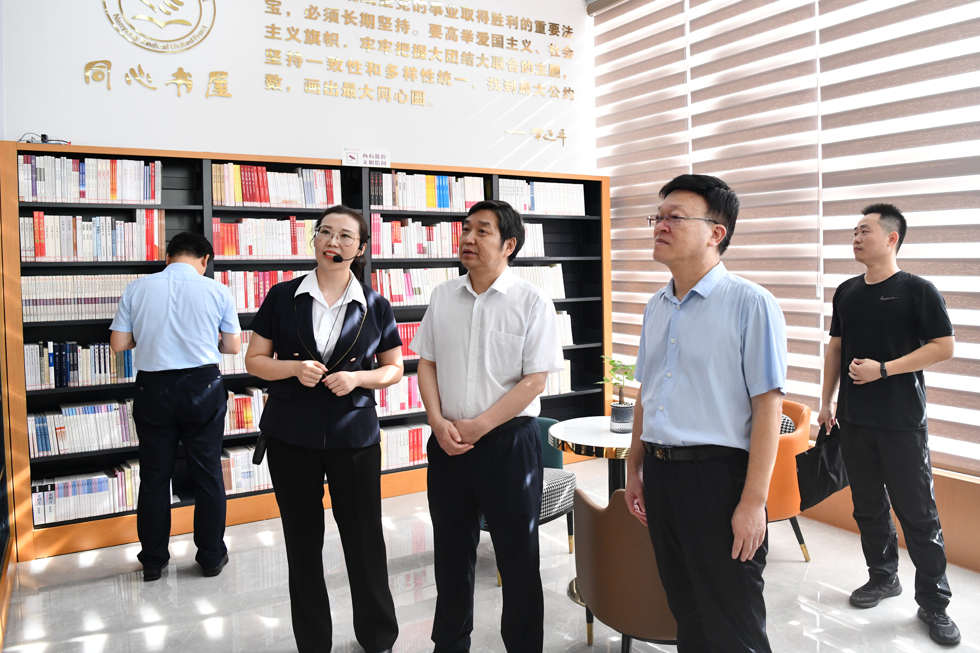 本网讯(文/基础医学部 戴姝琳)8月22日上午,民盟河南省委会专职副主委柳锋波一行莅临我校开展“凝心铸魂强根基 团结奋进新征程”专项调研活动,并在民盟南阳医专支部“盟员之家”召开座谈会。南阳市政协副主席、民盟南阳市委会主委华道梅,中共南阳市委统战部常务副部长、二级巡视员罗岩涛,校党委书记柳明伟,党委副书记刘涛,统战部长王岩出席座谈会。