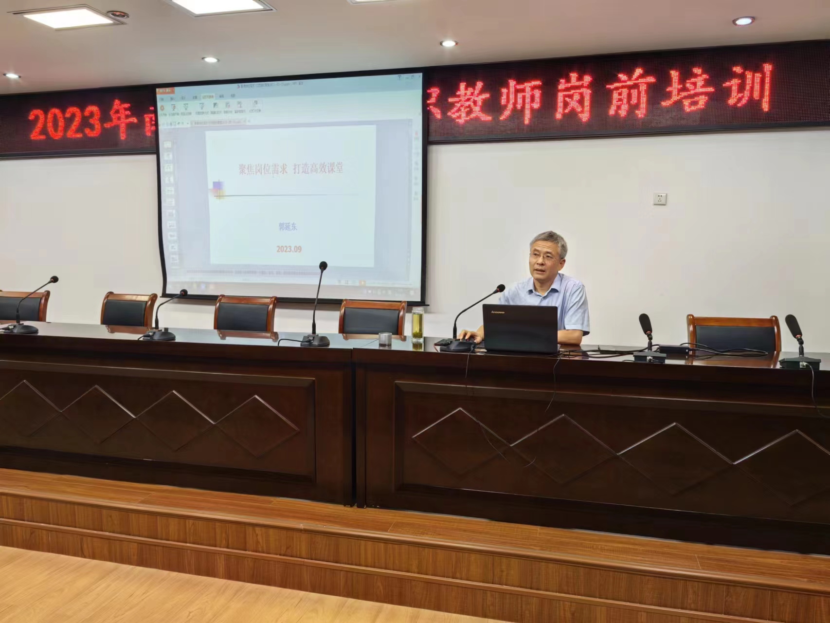 8月31日上午,开班仪式在一号办公楼5楼会议室举行。校党委书记柳明伟,校党委委员张胜海,校党委委员、副校长范真、刘荣志出席,各系(部、院)主管教学工作的领导及全体2023年新入职教师参加。