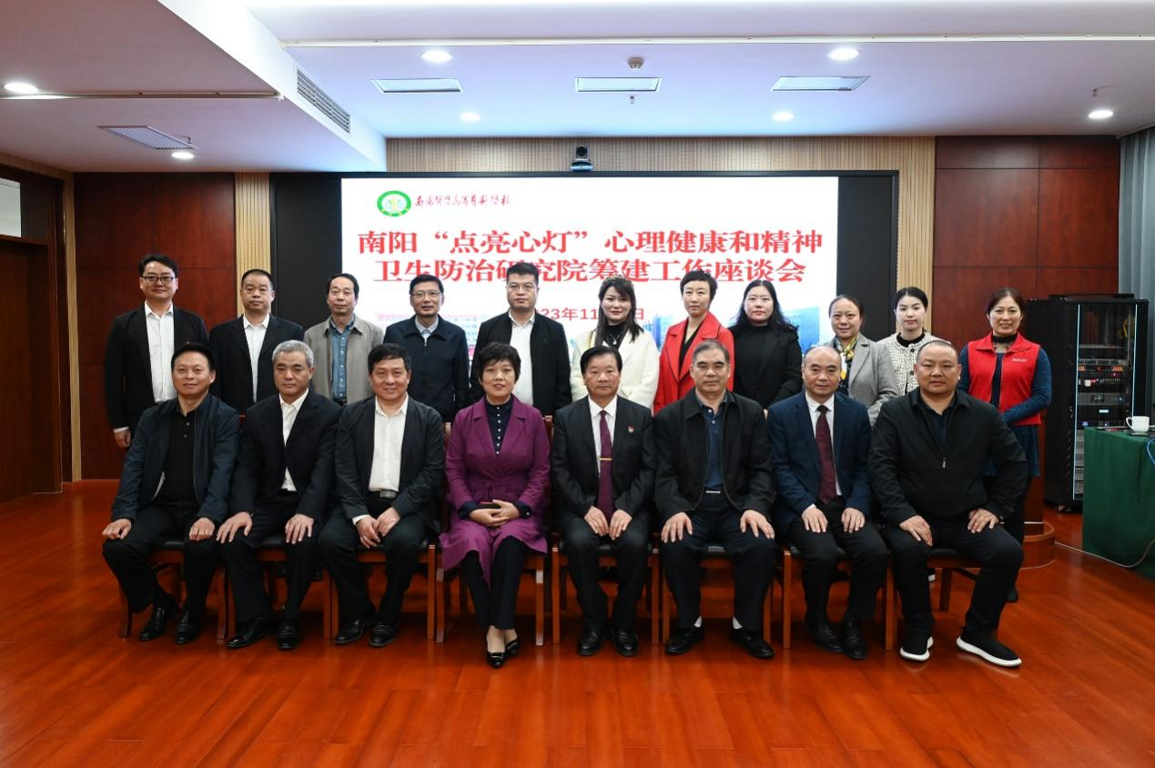 本网讯(文/学生健康服务与心理咨询中心 李孟辉)11月3日上午,南阳“点亮心灯”心理健康和精神卫生防治研究院筹建工作座谈会在南阳医专仲景文化中心610会议室隆重召开,国家心理健康和精神卫生防治中心社区康复指导部副主任李传旭亲临会议,河南省心理协会理事长王长虹,南阳市政法委副书记杨松林,南阳市政协常委冯瑛剑,南阳市卫健体委副主任宋万新,南阳市妇联副主席、南阳市委组织部党员教育中心科长叶森,共青团南阳市委四级调研员李敬卓,洛阳烧伤医院董事长肖建勋及南阳市第四人民医院、河南艾仲医健康管理有限公司、众悦(南阳)科技有限公司、南阳市儒林置业有限公司等省内多家医院、企业负责人,南阳医专校长范真,党委副书记刘涛,副校长刘荣志、秦玖刚出席会议,学校各相关部门(单位)负责人与会。座谈会由刘涛主持。