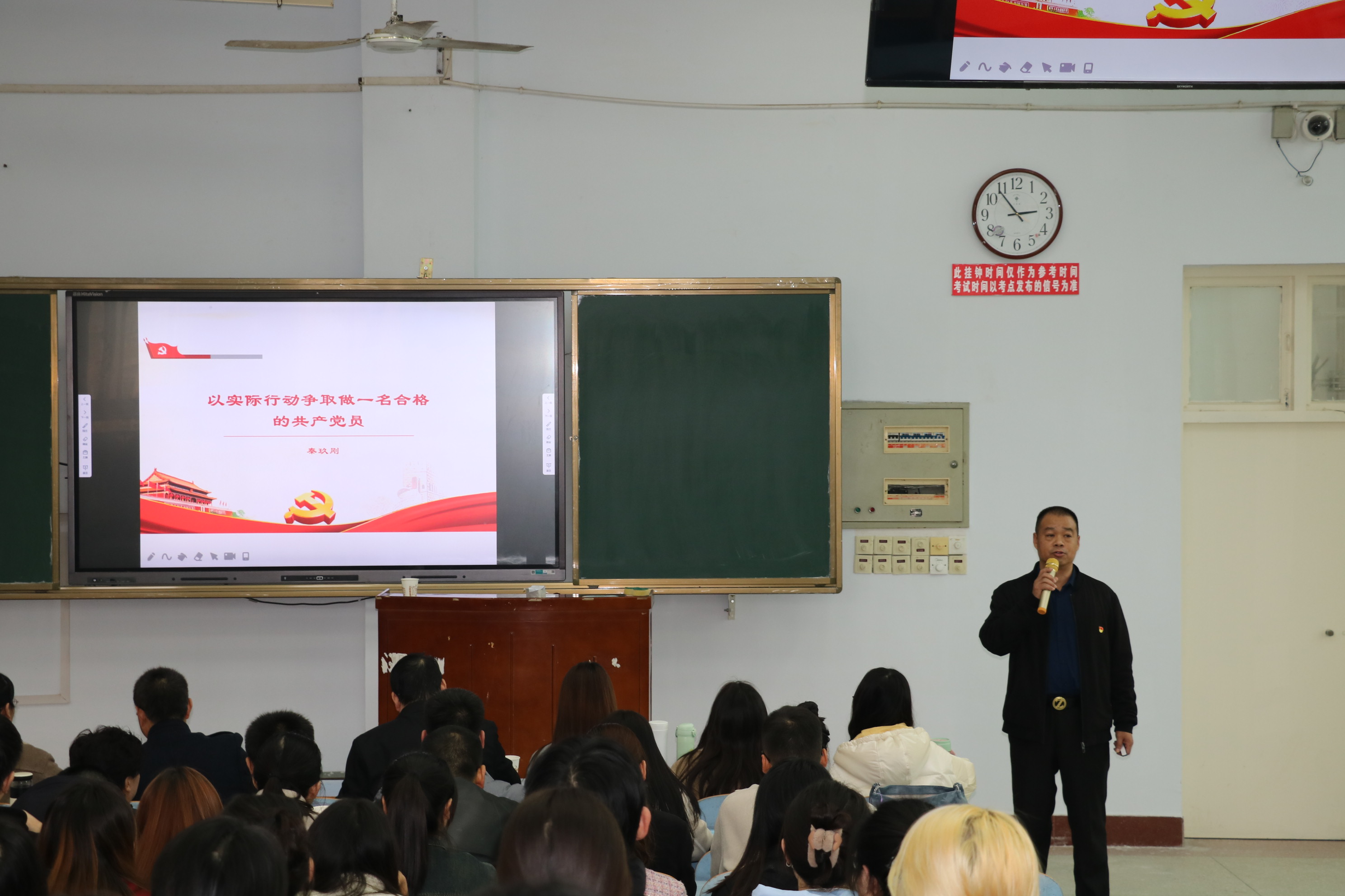 秦玖刚以《以实际行动争取做一名合格的共产党员》为题,从四个方面进行讲授。一是端正入党动机,是入党的首要问题,有了正确的入党动机,才能正确地指导行动。二是按照党员标准严格要求自己,必须全面理解党章规定的党员标准,用党员标准规范自己的思想和行为。三是严格履行入党手续,从递交入党申请书到预备期满转正,每一个步骤都必须严格遵守,认真接受党组织的培训以及正确对待党组织的考察。四是入党后要努力保持共产党员的先进性和纯洁性。入党后要努力从坚定理想信念、牢记党的宗旨、坚持勤奋学习、积极努力工作、自觉遵守纪律、永葆政治本色六个方面保持共产党员的先进性和纯洁性。