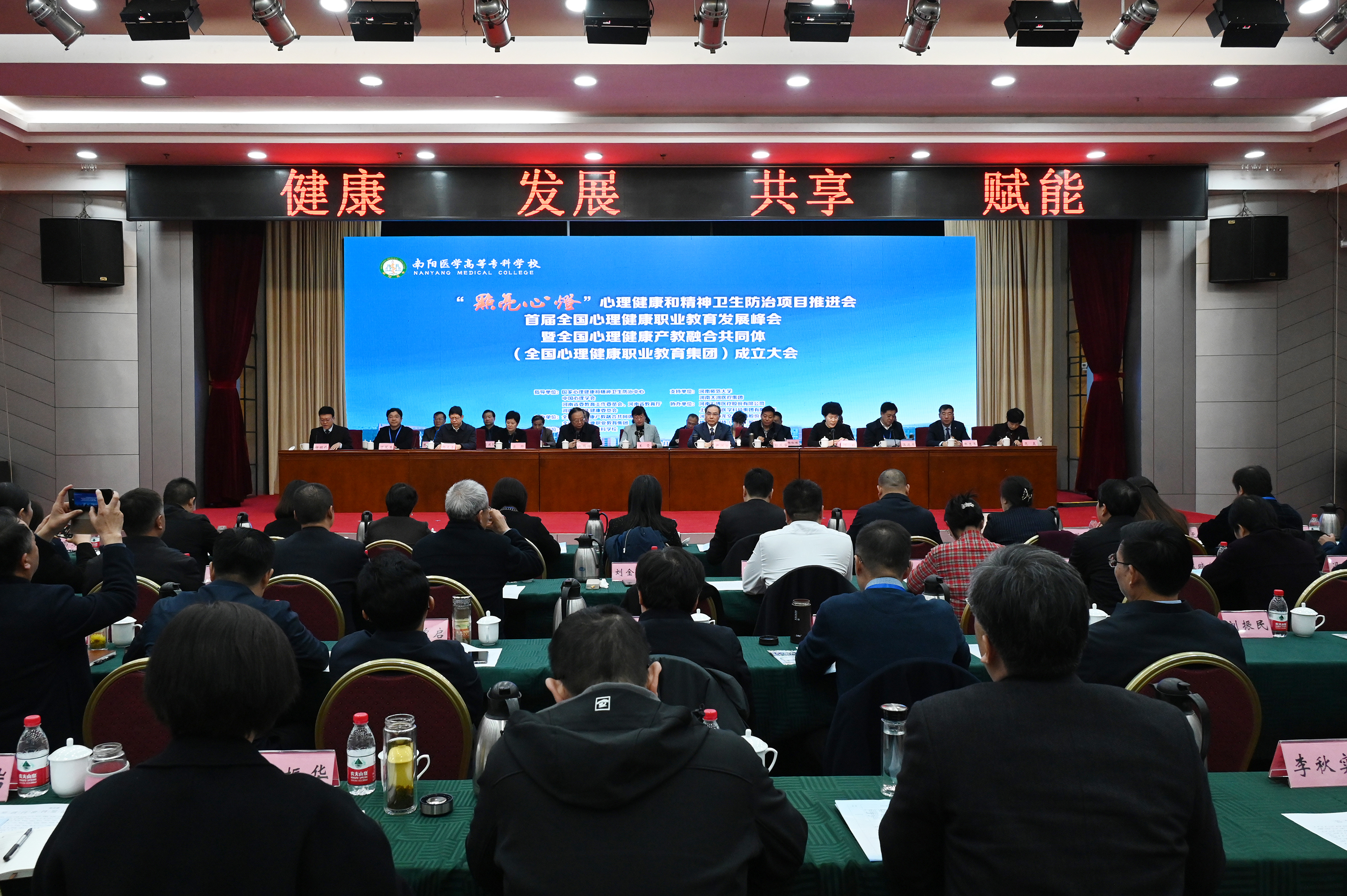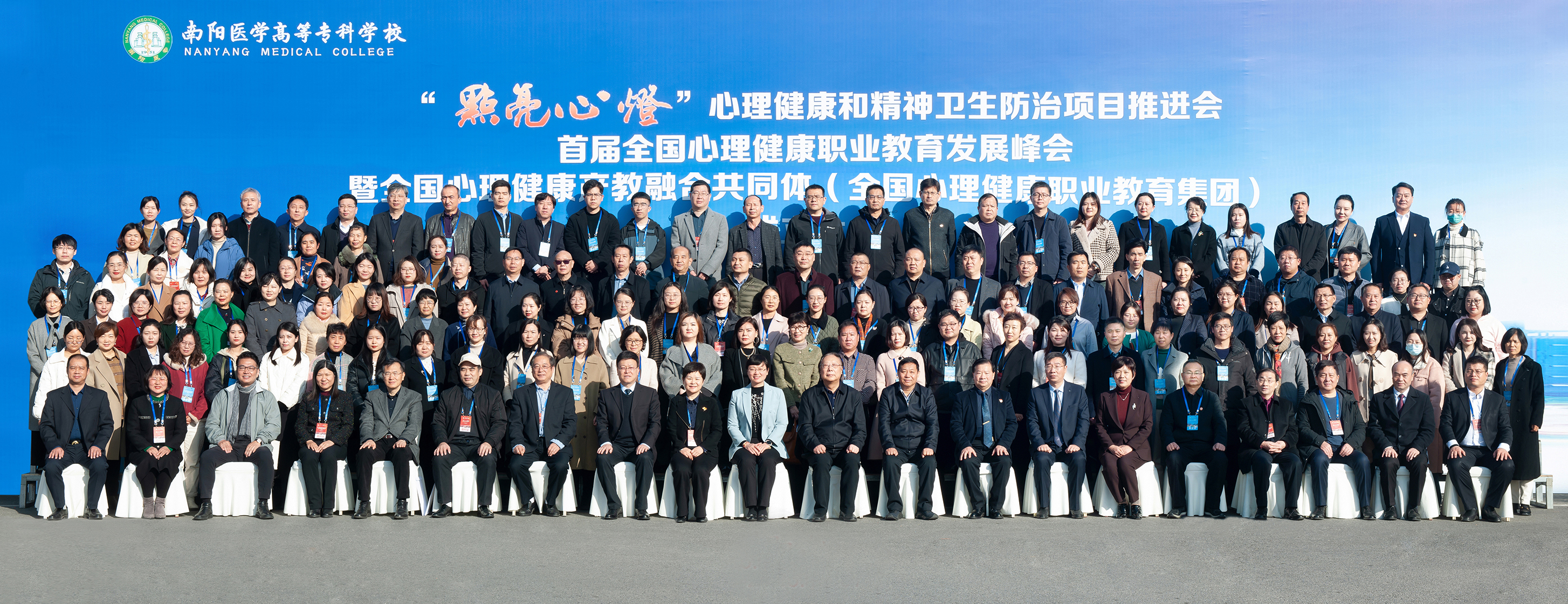 国家心理健康和精神卫生防治中心党委副书记、纪委书记姜雯,中国心理学会理事长赵国祥,中共河南省委教育工委专职副书记尹洪斌,河南省卫健委二级巡视员郭茂华,南阳市副市长阿颖,南阳市政协副主席、教育局局长杨文普,河南师范大学副校长宋晔等政府、省内外高校、医院、企事业单位领导专家,全国心理健康产教融合共同体成员单位代表,“点亮心灯”项目实施单位负责同志等90个单位300余位领导、嘉宾参加会议,会议由南阳医专党委书记柳明伟、校长范真主持。