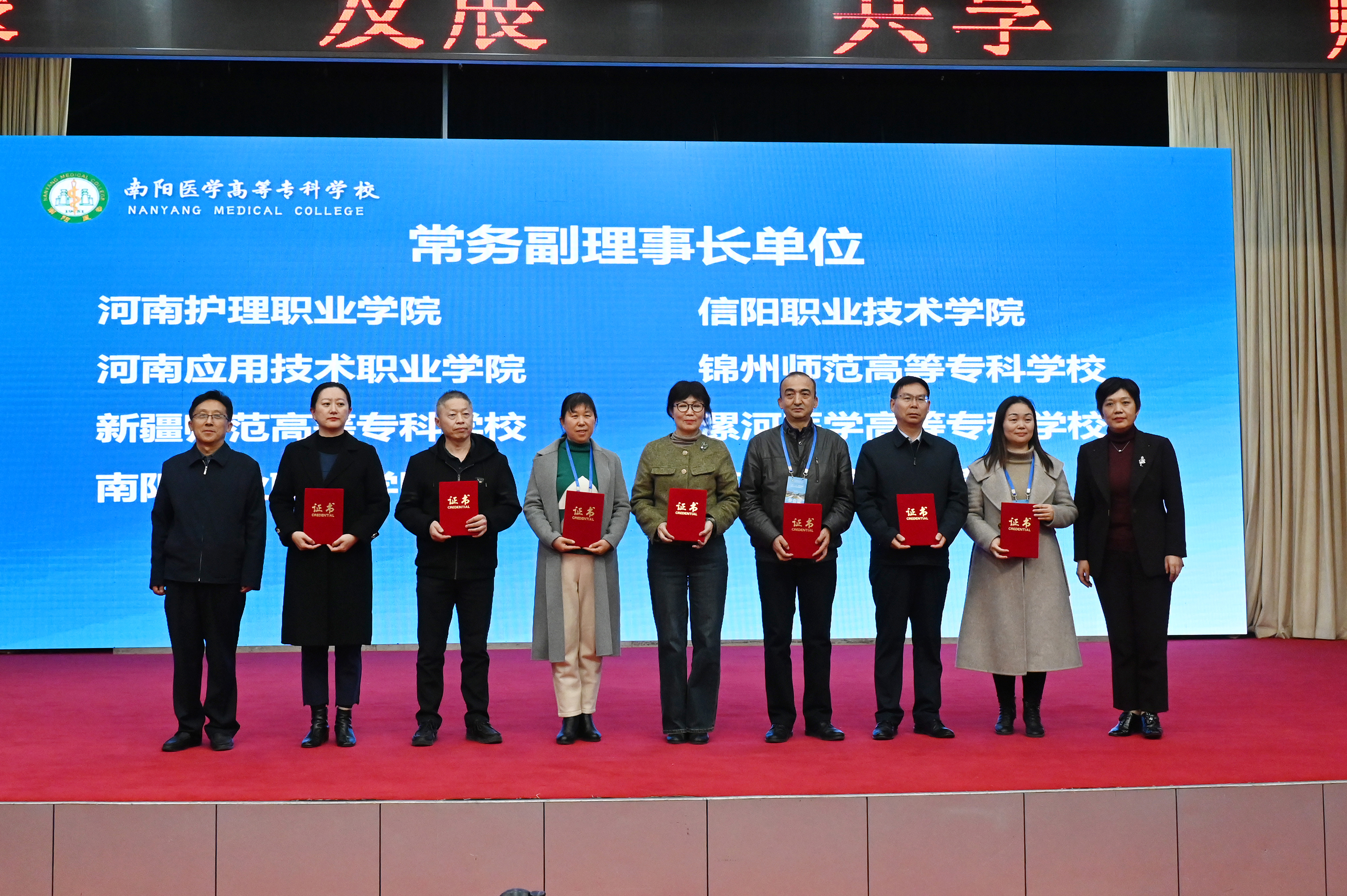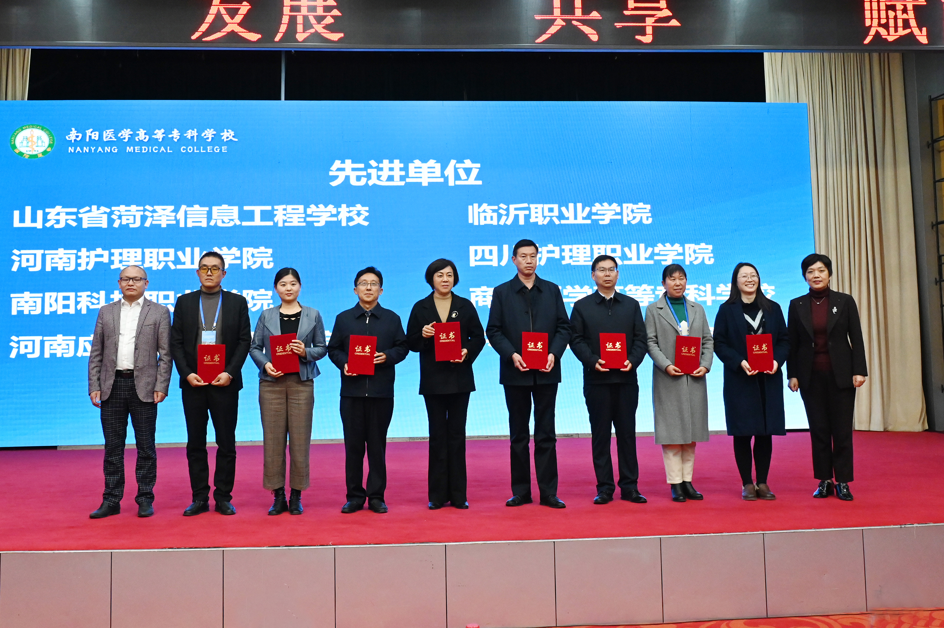 在经验分享阶段,范真从工作机制建设、文艺社团活动、校外实践服务等方面对南阳医专心理健康教育工作进行介绍,并对共同体下一步工作任务进行详细阐述,按照教育部《行业产教融合共同体建设指南》和17部门联合下发的行动计划要求,积极开展五育并举、健康教育、监测预警、咨询干预、社会服务、队伍建设、健康科研、健康环境营造等八项重点工作,将心理健康教育工作与教学科研创新相结合,与共同体成员单位合力进行心理健康专题教学资源库建设,制定中医心理类技术技能标准,开发心理测评工具,研发心理教学设备。安阳师范学院心理健康教育与咨询中心主任刘媛媛、三峡职业技术学院心理健康指导中心主任简璐丝、黔南民族幼儿师范高等专科学校副校长韦永武、共青科技职业学院学工处处长黄鑫等院校领导分享了本校心理健康教育工作方面的成功做法和经验。范真、陈桂林、陈俊启为全国心理健康产教融合共同体理事长、常务副理事长、副理事长、常务理事、理事单位颁牌,为全国职业院校心理健康教育先进单位、获得心理健康教育优秀案例单位颁发证书。