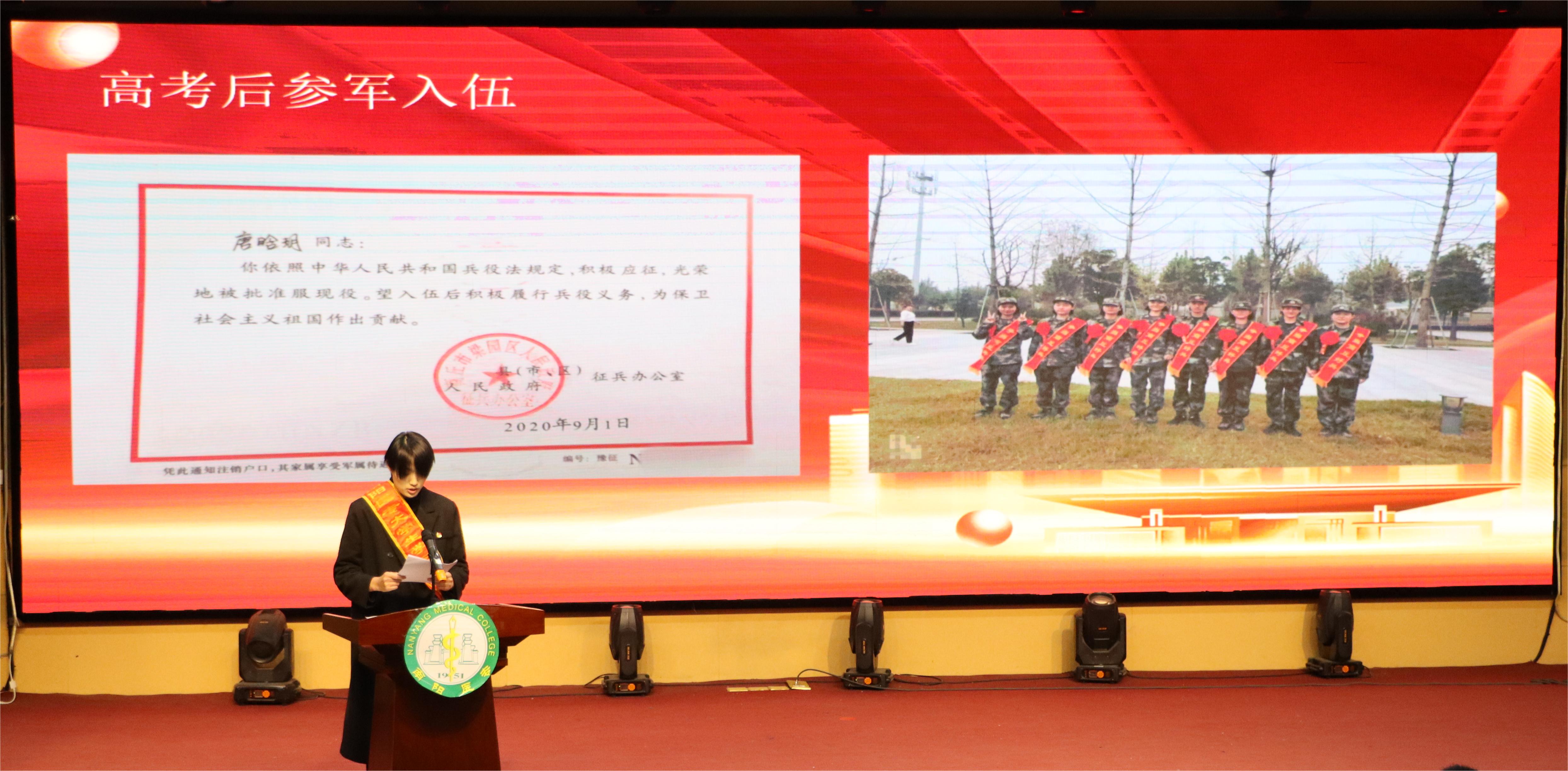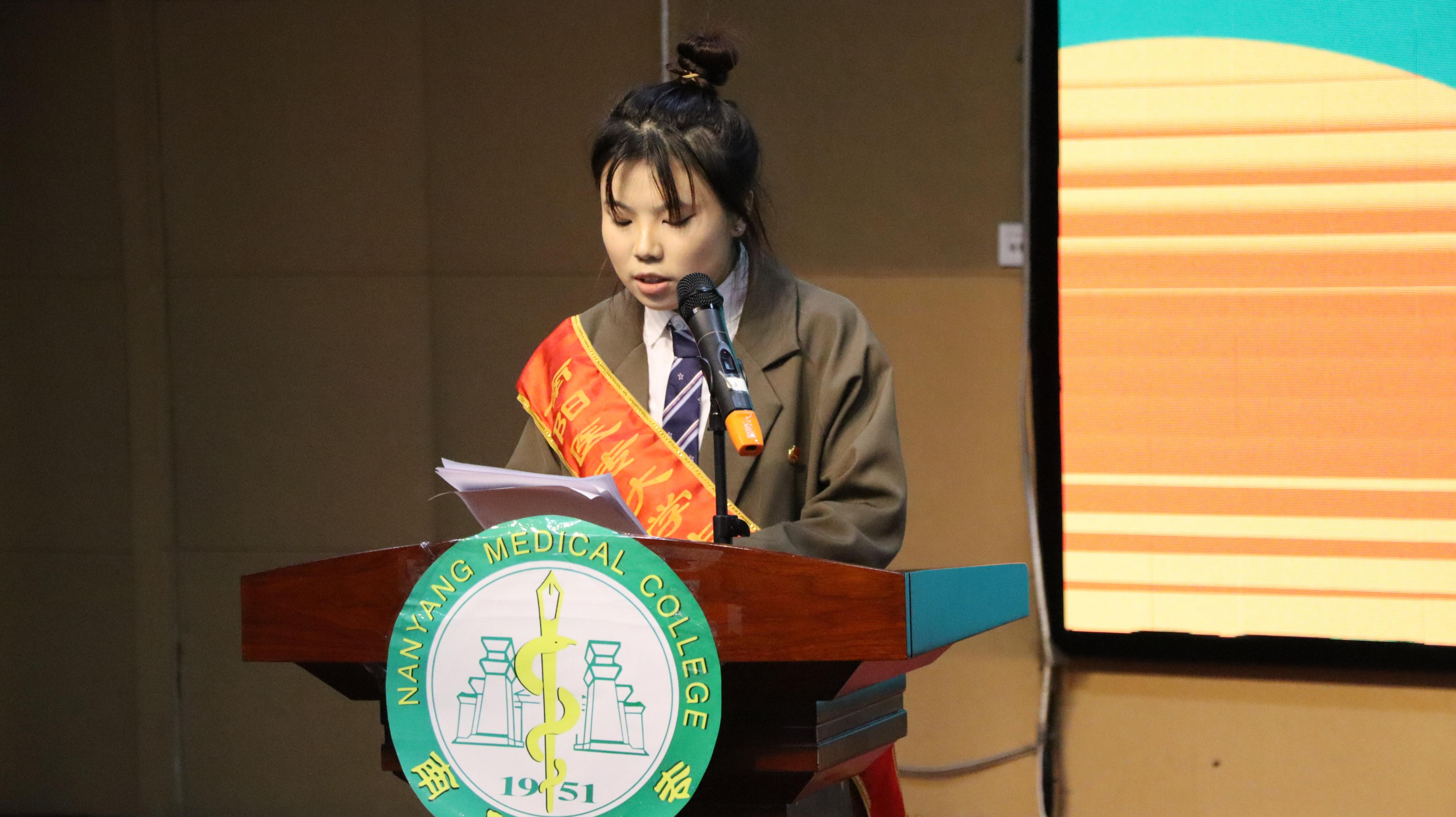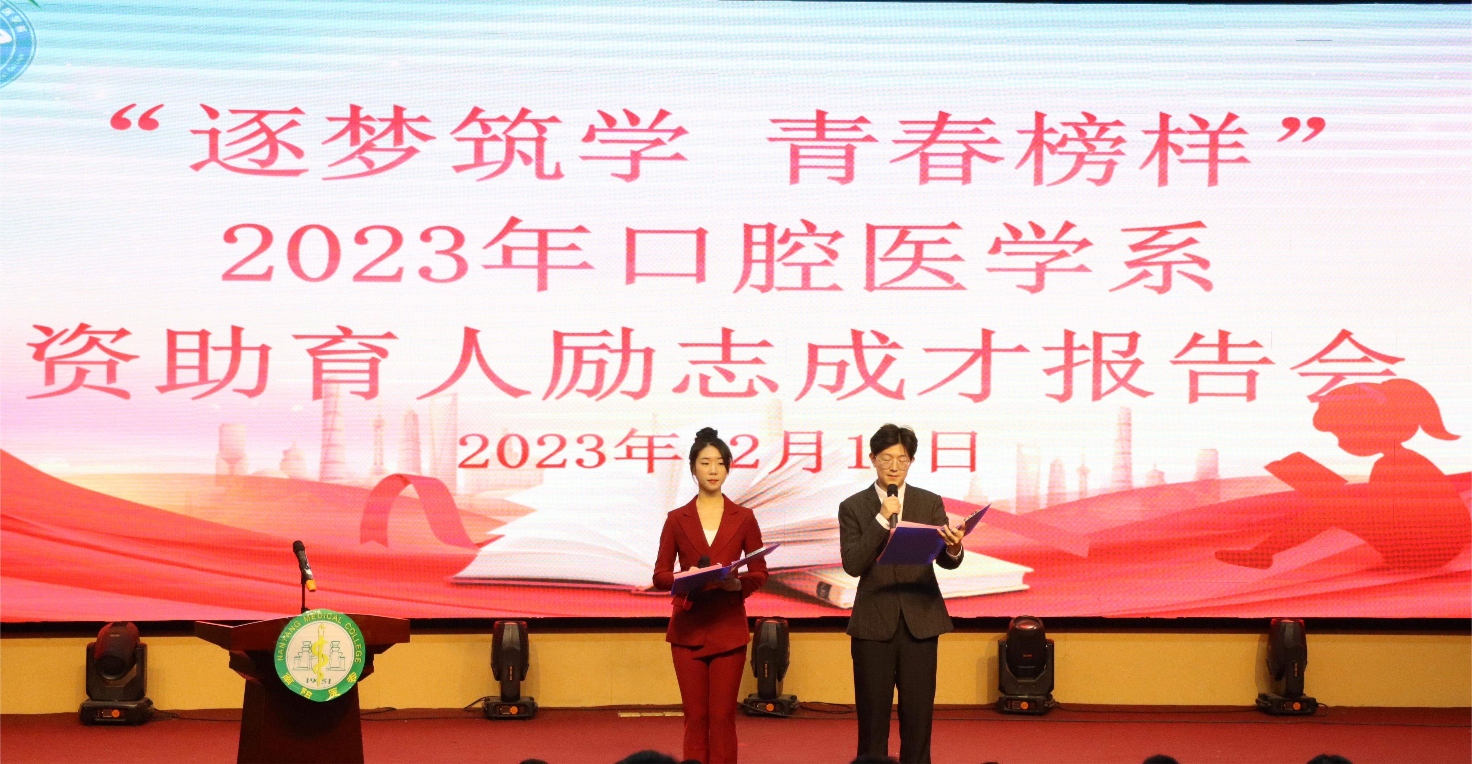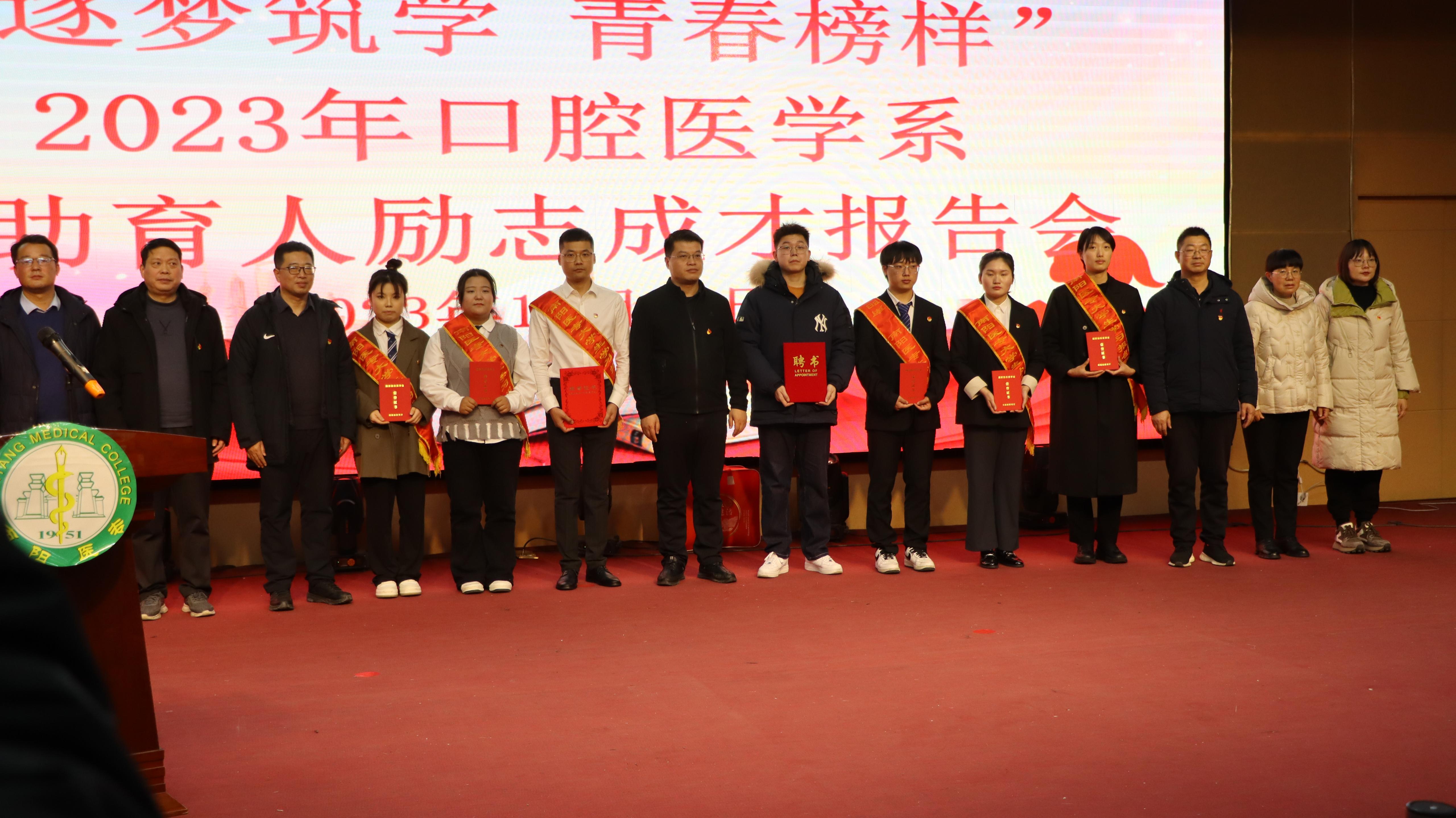 本网讯(文/口腔医学系 雷云)为加强感恩励志教育,激发学生发奋学习的强大动力,12月13日晚,口腔医学系在仲景东区报告厅举办“逐梦筑学,青春榜样”资助育人励志成才报告会。校党委副书记刘涛、学生处副处长吴东波出席会议,口腔医学系行管人员及400余名学生参加会议。