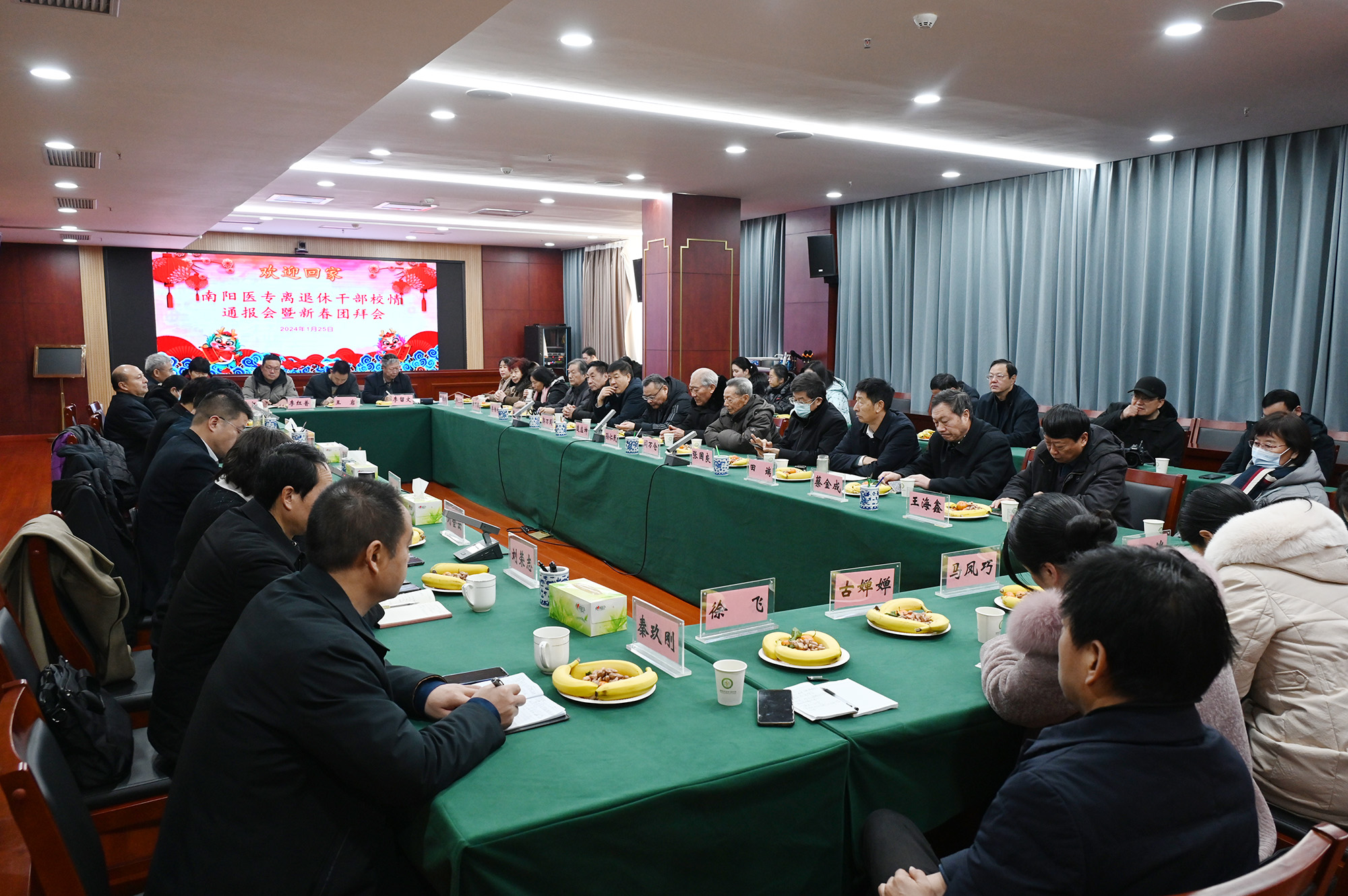 本网讯(文/离退处 艾静)1月25日上午,我校在仲景东区仲景文化中心召开离退休干部校情通报会暨新春团拜会。校领导班子全体成员、离退休老领导、老专家、老同志代表出席会议,相关处室负责同志参加。会议由党委副书记刘涛主持。