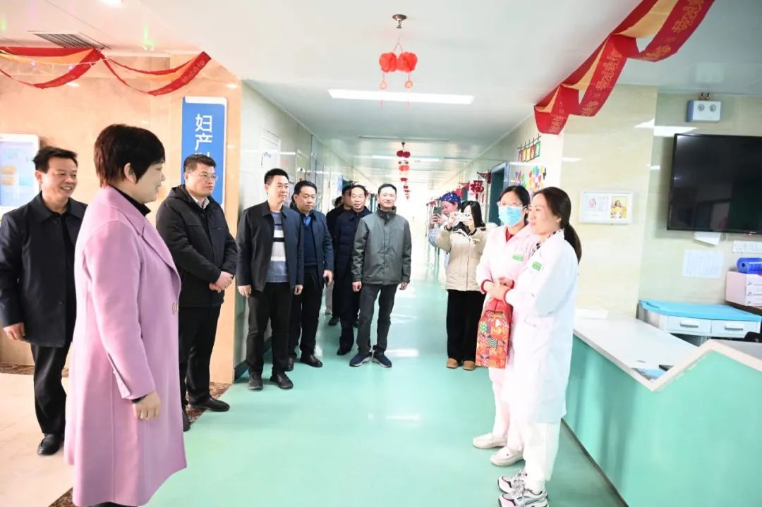 本网讯(文/党政办 刘辉)2月10日,正月初一上午,校长范真、党委副书记刘涛、副校长刘荣志带领党政办、总务处、保卫处、生活服务中心相关负责同志,深入仲景西区、仲景东区、孔明校区和三所附属医院,看望慰问值班值守的教职员工及医务工作者代表,向他们送去新春祝福。