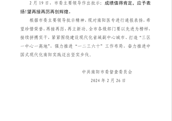 2月19日,市委主要领导作出批示:成绩值得肯定,应予表扬!望再接再厉再创辉煌。