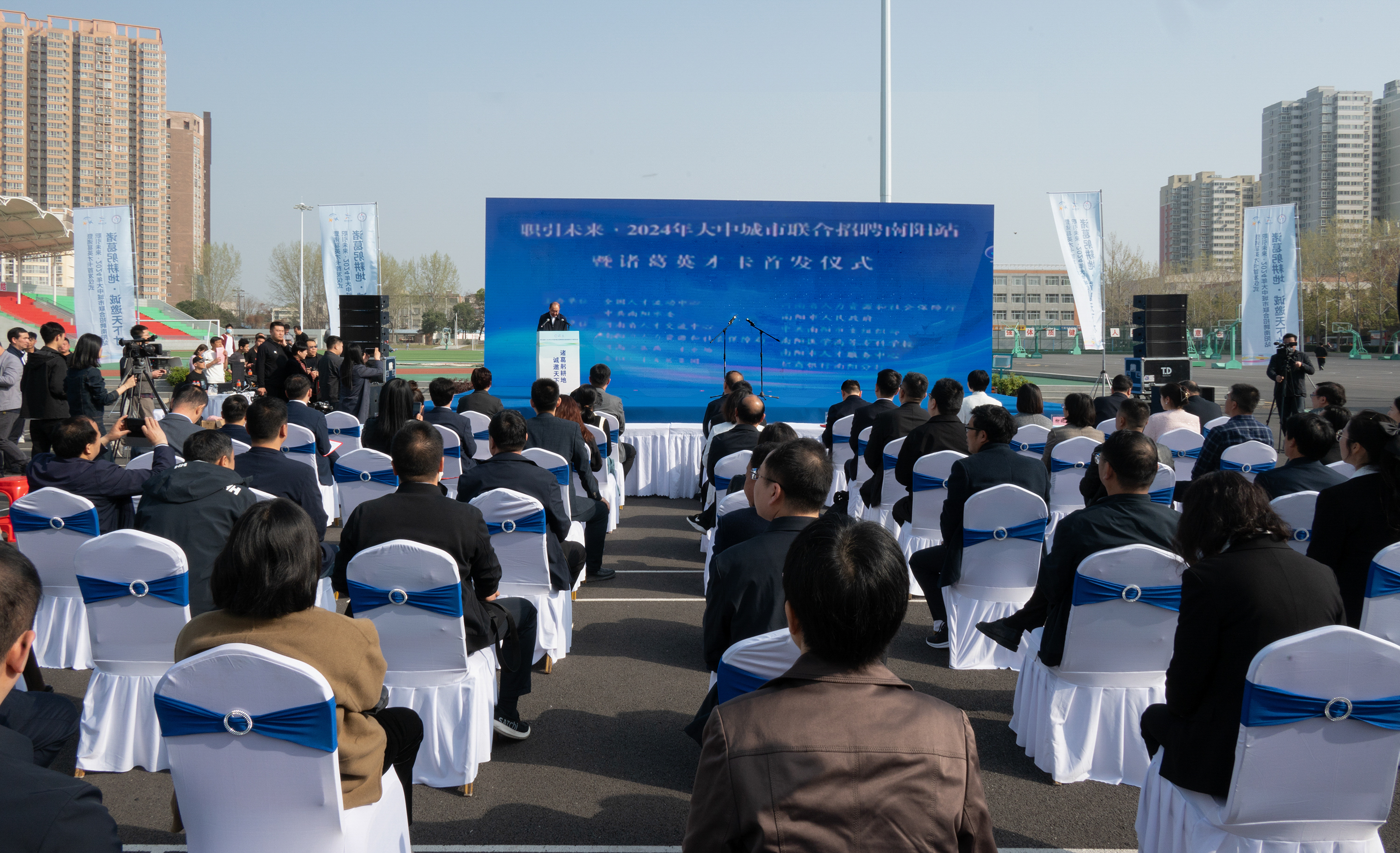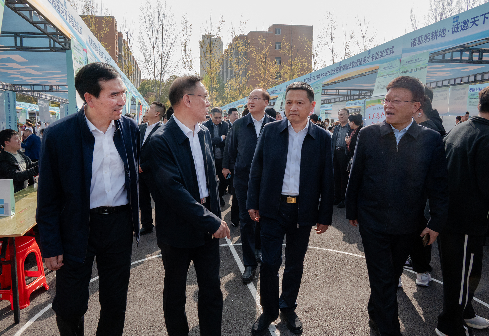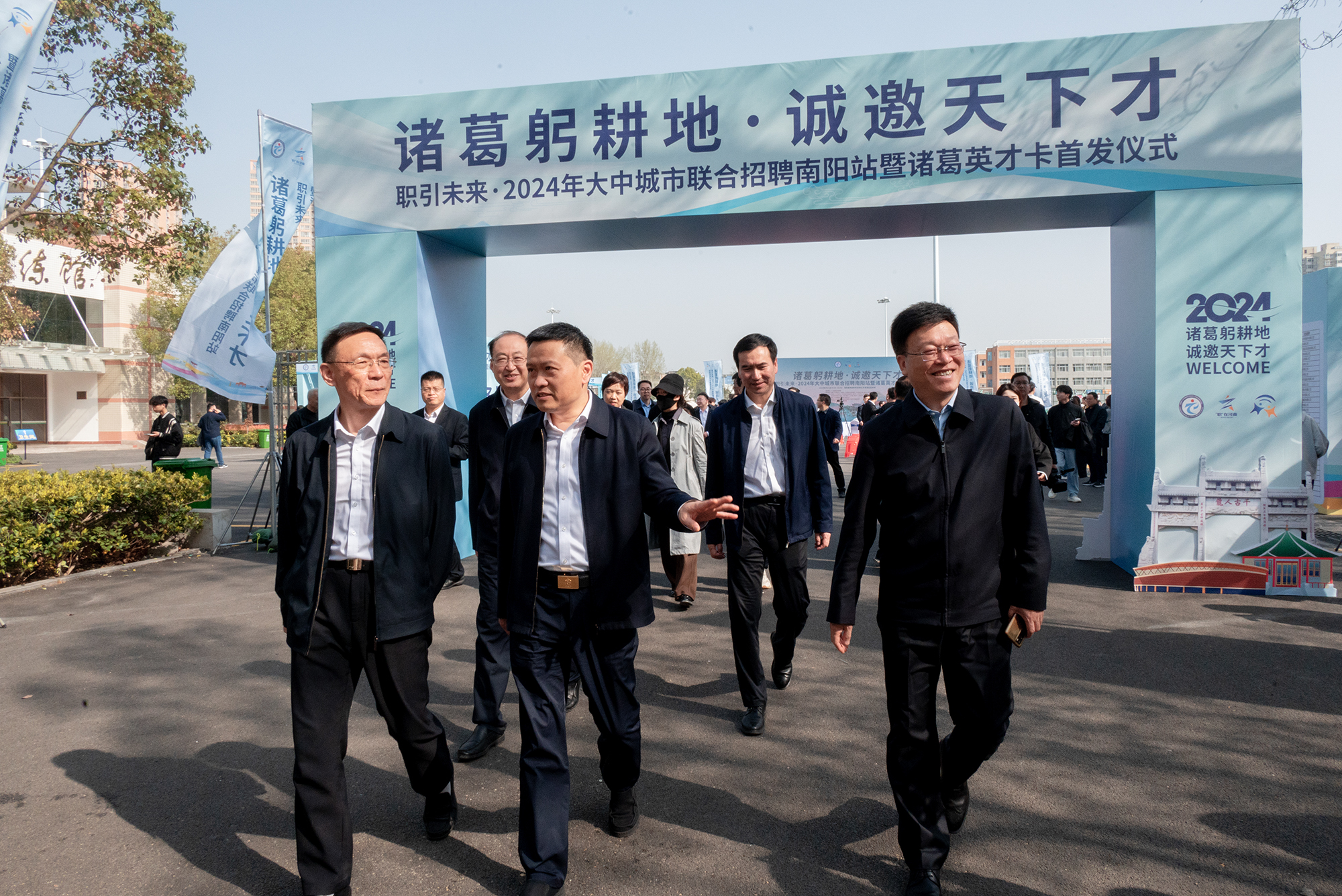 本网讯(文/就业创业处 张辉)3月31日,由人力资源和社会保障部发起,全国人才流动中心、河南省人力资源和社会保障厅、中共南阳市委、南阳市人民政府主办,河南省人才交流中心、中共南阳市委组织部、南阳市人力资源和社会保障局、万象城网页版,万象城(中国)、河南中医药人才市场、南阳市人才服务中心、南阳人才发展集团、招商银行南阳分行承办的职引未来——2024年大中城市联合招聘南阳站暨诸葛英才卡首发仪式在我校仲景西区篮球场成功举办。河南省人才交流中心主任冯以干,南阳市委常委、组织部部长李永,万象城网页版,万象城(中国)党委书记柳明伟、校长范真,招商银行郑州分行行长助理陈燕,中国银联河南分公司副总经理张晓欢等领导出席活动并巡展。启动仪式由市人社局局长郝以昆主持。活动采取现场云直播同步进行。