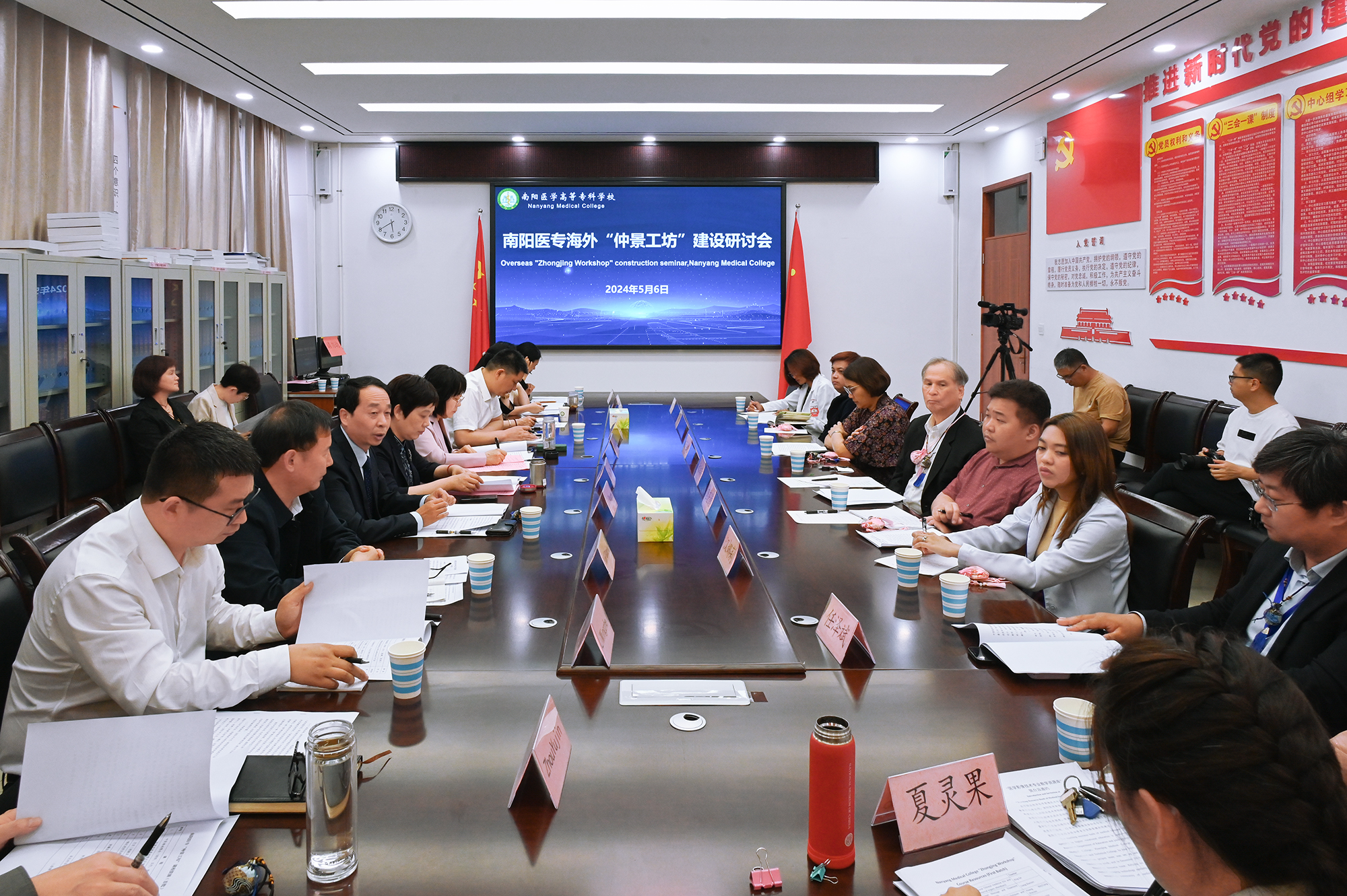 本网讯(文/国际教育学院 程琳)5月6日下午,我校在仲景西区精术楼423会议室成功举办海外“仲景工坊”建设研讨会。校党委副书记、校长范真,党委委员、纪委书记刘金云,党委委员、副校长刘荣志,菲律宾伊密里欧学院校长康珀斯,俄罗斯中医药学会会长任泽斌出席会议。教务处、质量管理办公室、中医系、药学系、针灸骨伤系、对外交流合作处、国际教育学院负责人及菲律宾教师代表参会。会议由刘金云主持。