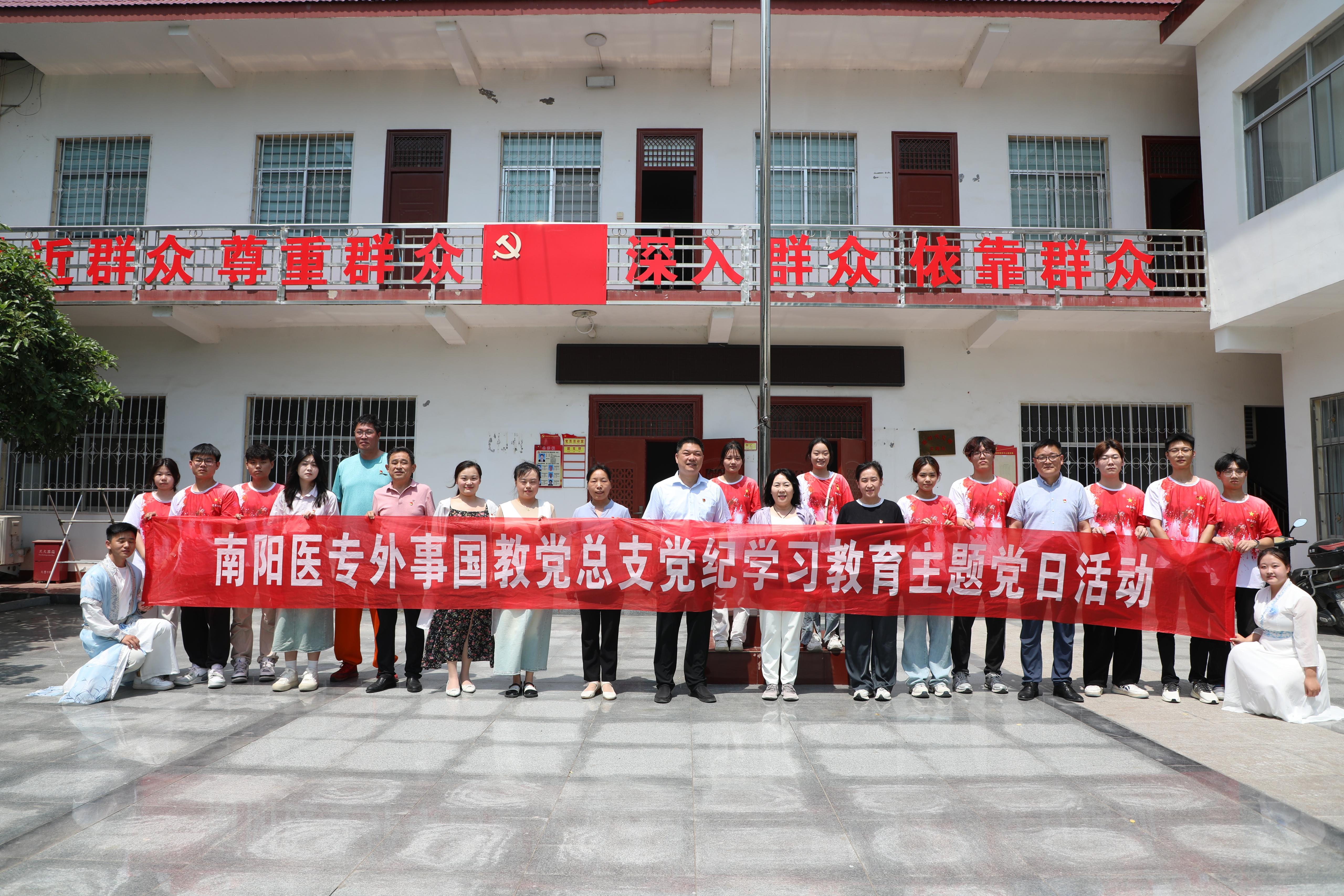 本网讯(文/国际教育学院 刘杭波)6月27日,河南省教育厅对外合作与交流处党支部、南召县城郊乡竹园沟村党支部与南阳医专外事国教党总支联合开展“党纪学习教育”主题党日活动。河南省教育厅对外合作与交流处处长王华星、副处长周朝霞,郑州轻工业大学国际处副处长马强和,河南省教育国际交流协会办公室主任王刚,南阳医专党委委员、纪委书记刘金云,南召县城郊乡竹园沟村党支部及南阳医专外事国教党总支的党员同志参加活动。