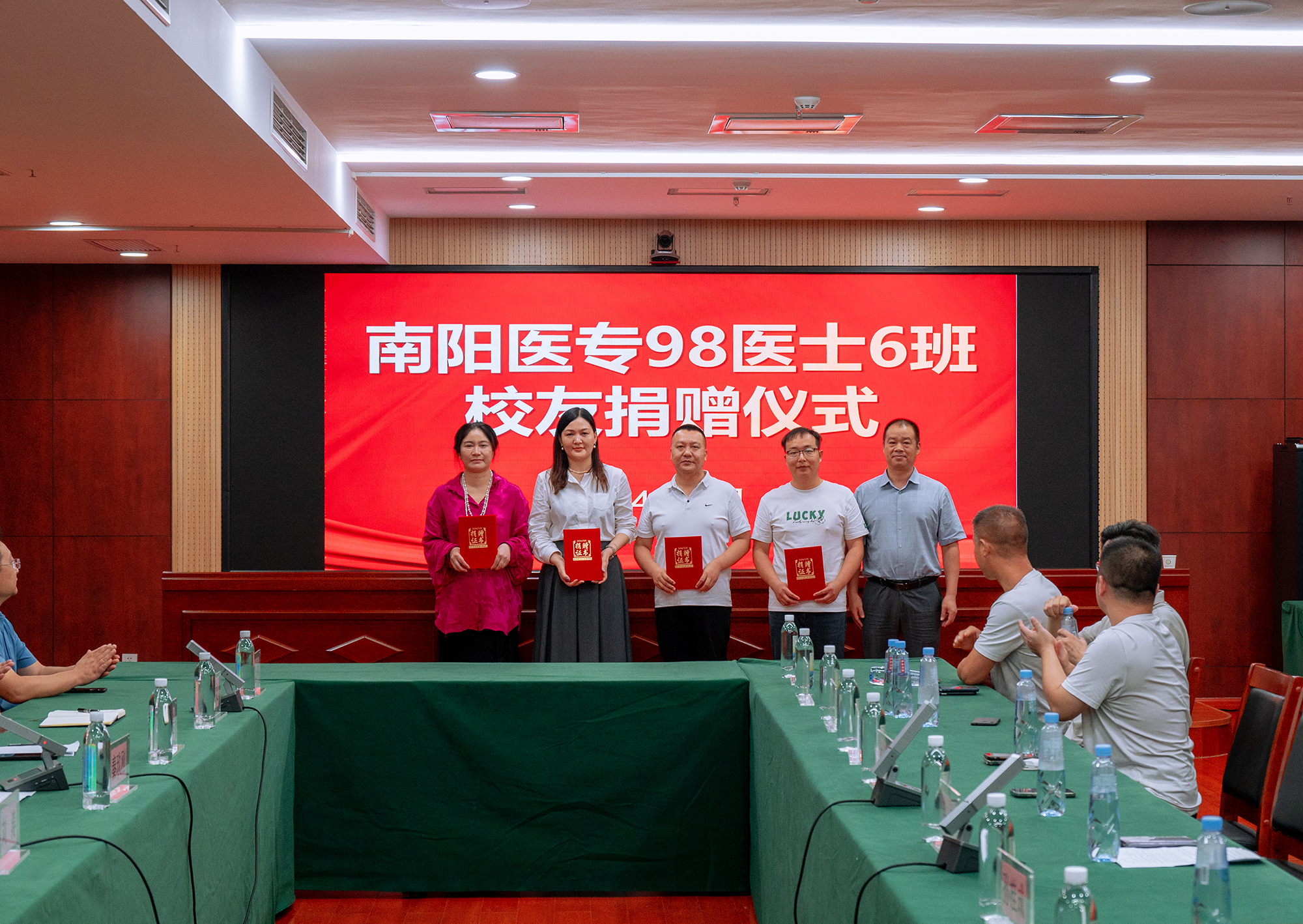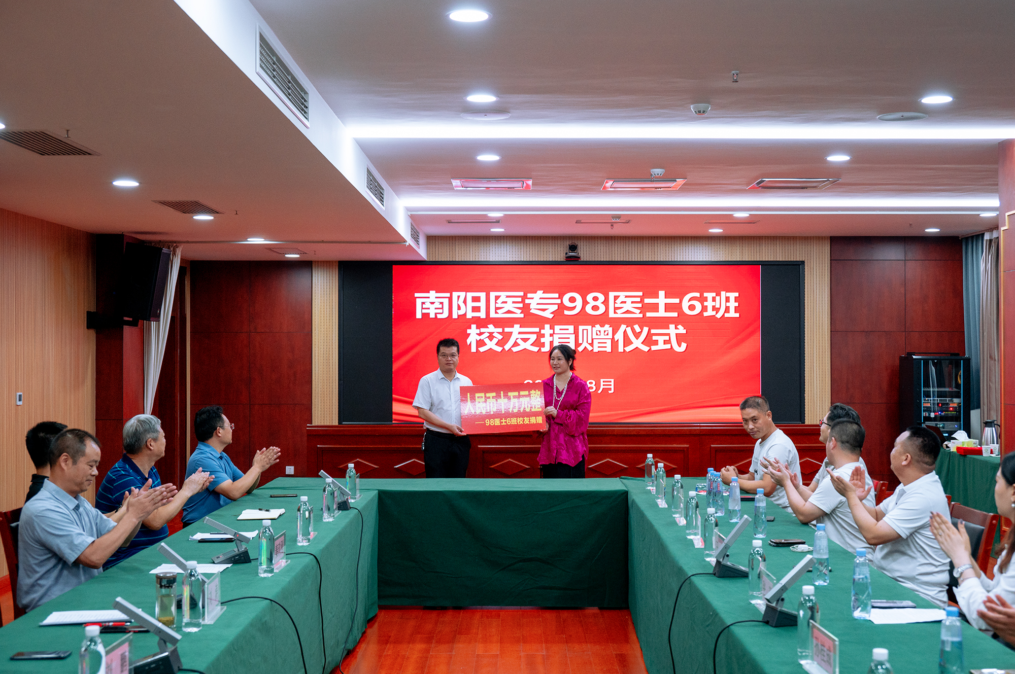 本网讯(文/就业创业处 杜婧)浓浓母校情,依依校友心。83日上午,南阳医专98医士6班优秀校友捐赠仪式在我校仲景文化中心610会议室举行。校党委副书记刘涛出席并致辞,党政办、宣传部、计财处、离退处、就业创业处、临床医学系等部门负责人参加。捐赠仪式由党委委员、副校长秦玖刚主持。