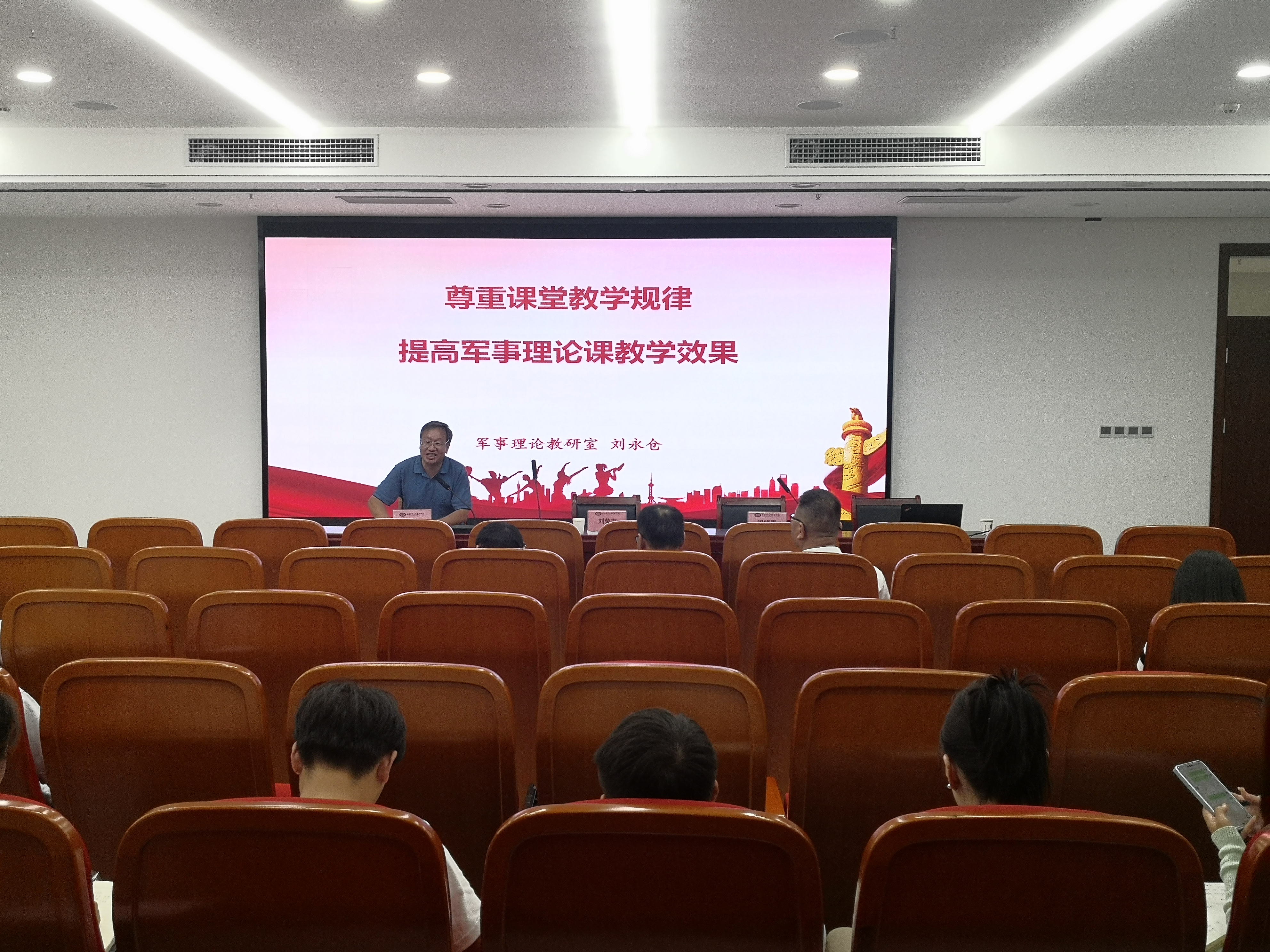 刘荣志指出,《军事理论》课属于大思政课,通过军事理论课的教学,能够增强大学生的国防观念、提升国家安全意识、促进综合素质提高,使学生了解当今世界局势和我国的国防战略,增进民族自豪感和历史使命感。他就如何开展好《军事理论》课程教学提出四点要求。一是要提高思想认识和政治站位。全体教师要把军事理论课的教学和军训有机结合起来,共同提升大学生的国防安全意识和军事理论素养。二是全体教师要充分结合实际,运用线上和线下相结合模式开展教学工作。三是任课教师要开展多种形式集体备课,认真研讨教学内容,以高标准、高质量完成授课任务。四是要严肃课堂纪律,保证学生学习效果。