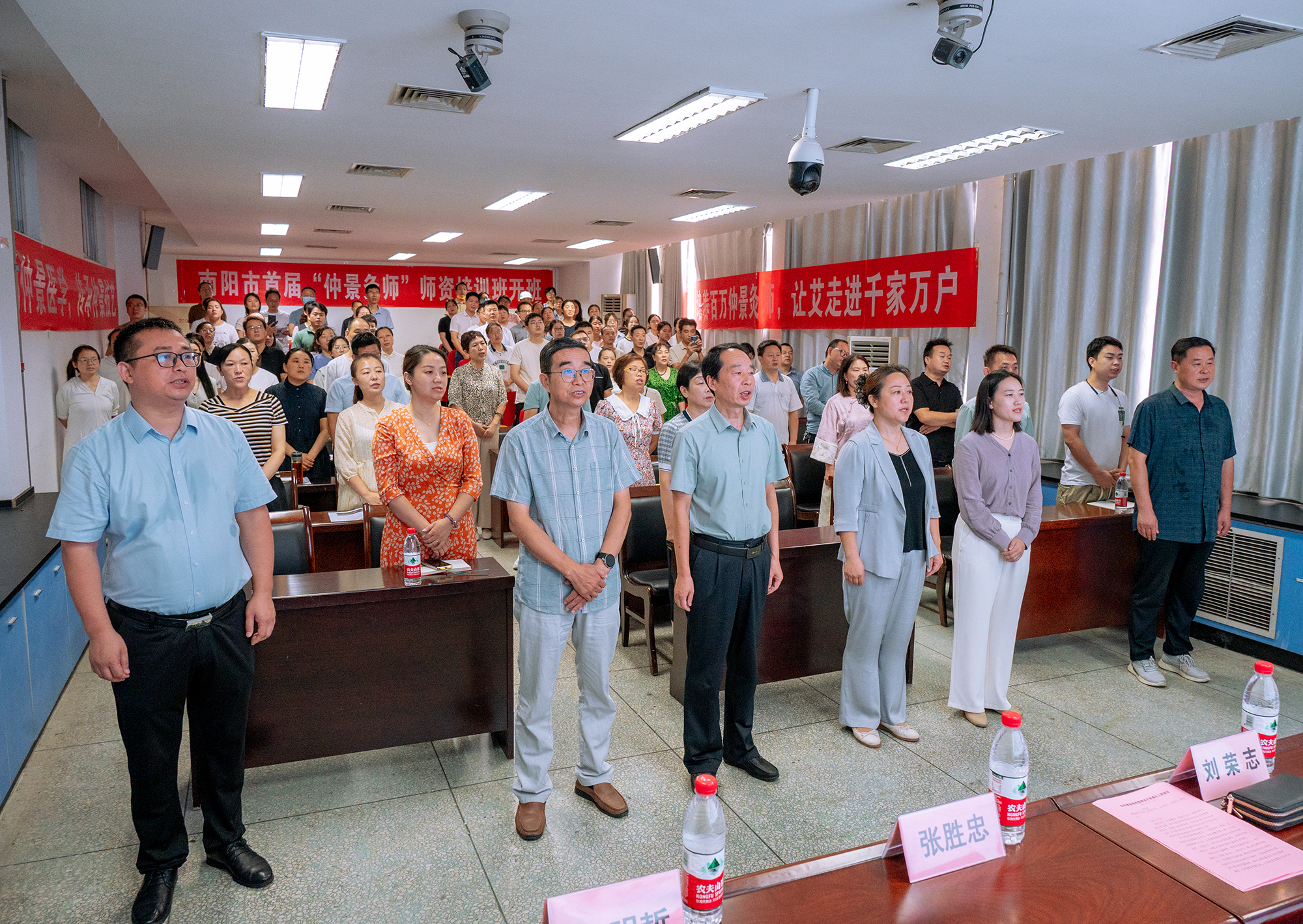 刘荣志介绍了学校的基本情况。希望学员们从落实中医药强省、强市战略和打造“两地一都”目标的高度,正确认识这次培训的目的和意义,增强学习的自觉性和主动性。把培训作为新的起点,转变角色,虚心学习,不断提高自己的知识水平和创新能力,发扬大医精诚的优良传统,满足人民群众对中医药服务的新需求。刘荣志表示,弘扬传统中医药文化,服务国家和地方经济社会发展是南阳医专的重要职责。为了办好这次“仲景灸师”师资培训班,学校前期做了大量的准备工作,完善了仲景灸培训教材编写、师资队伍建设、艾灸师职业技能等级资格认定等各个环节,形成了比较完整的培训体系。为打造“仲景灸法” “仲景灸师”品牌奠定了良好基础。