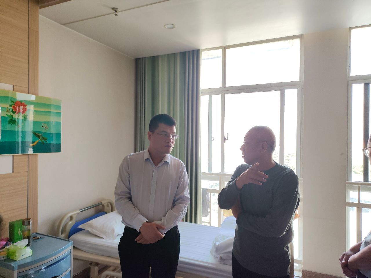 我校共有离休干部2人,均已超过90岁,刘涛带队分别深入到离休干部家庭和所住医院,与离休干部和家属交流谈心,关切地询问他们的健康状况、生活条件和所需所盼,认真听取对服务管理、待遇落实等方面的意见建议。