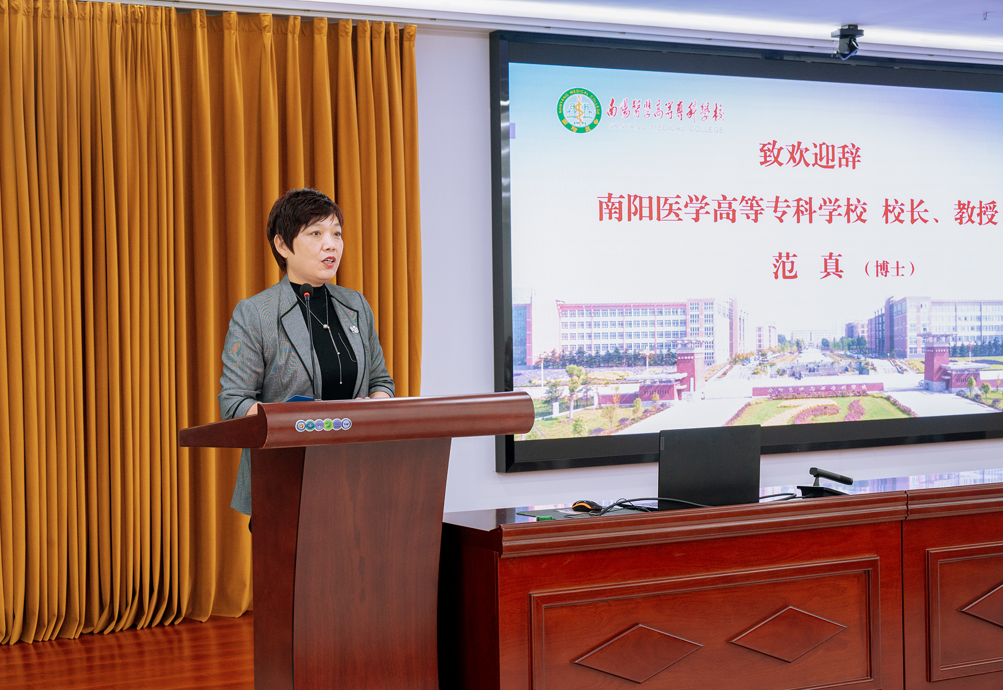 范真代表学校向出席讲座的企业专家表示衷心和欢迎。她表示,产教融合、校企合作是办好职业教育的关键。学校为适应大健康产业发展需求,开设健康管理和中医养生保健两个专业,实施“订单式培养模式”,学校和企业整合资源形成合力,推动产教融合,为培养高素质应用型人才提供坚实的支撑。
