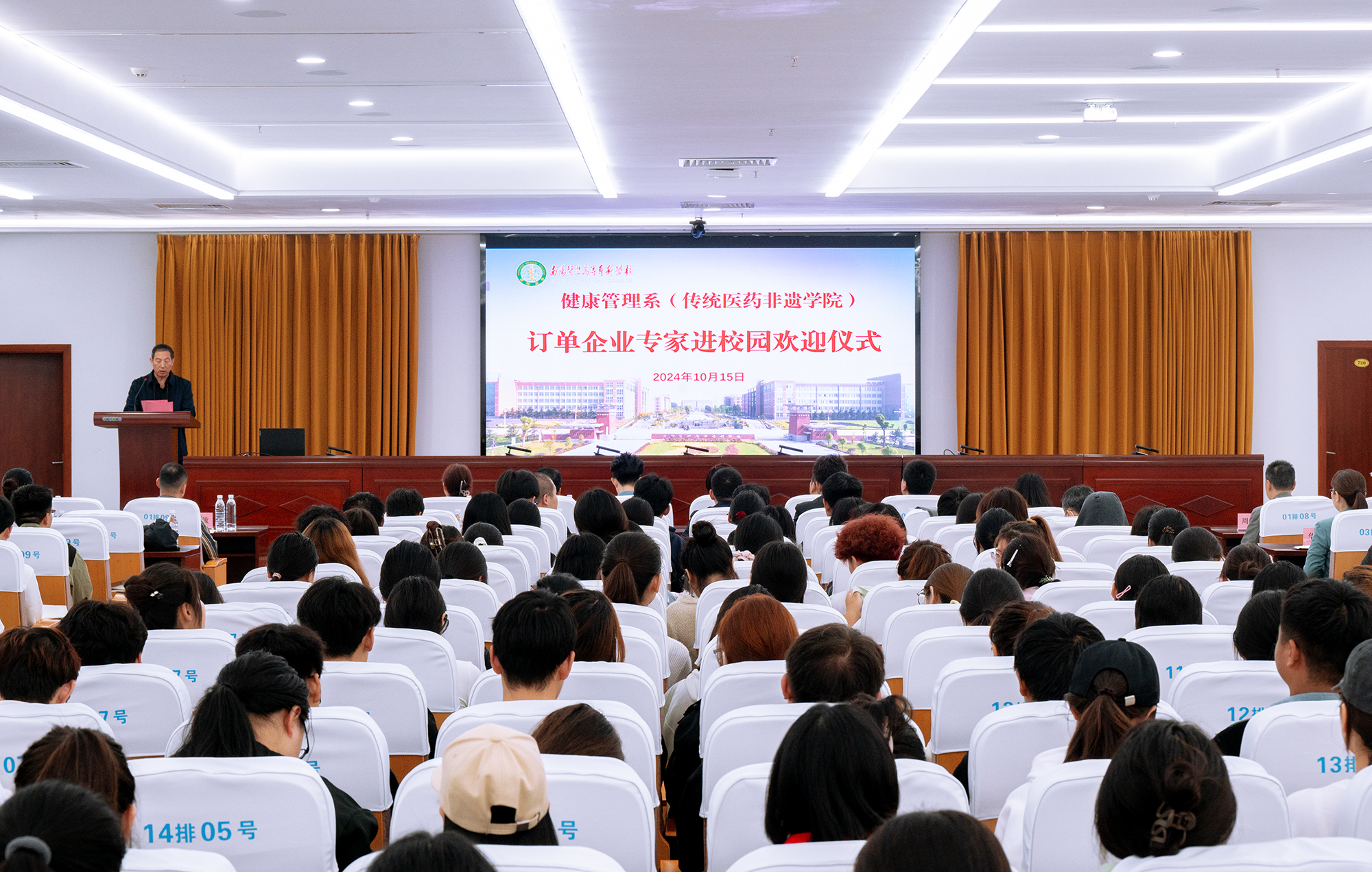 本网讯(文/健康管理系 王超)为创新人才培养模式,提升健康管理专业和中医养生保健专业新生对专业认知和理解,提高自我职业规划能力1015-16日,健康管理系邀请企业专家走进校园作专题讲座。校长范真、副校长刘荣志、就业创业处处长刘鹏、教务处副处长周玉金出席活动,健康管理系600余名学生聆听讲座。参加本次讲座的企业有大河医疗集团、杭州灸春堂、无锡华粹堂、上海美博莎医院管理公司、江苏久灵焱健康科技有限公司、张氏经络收放医院、骏丰频谱有限公司。