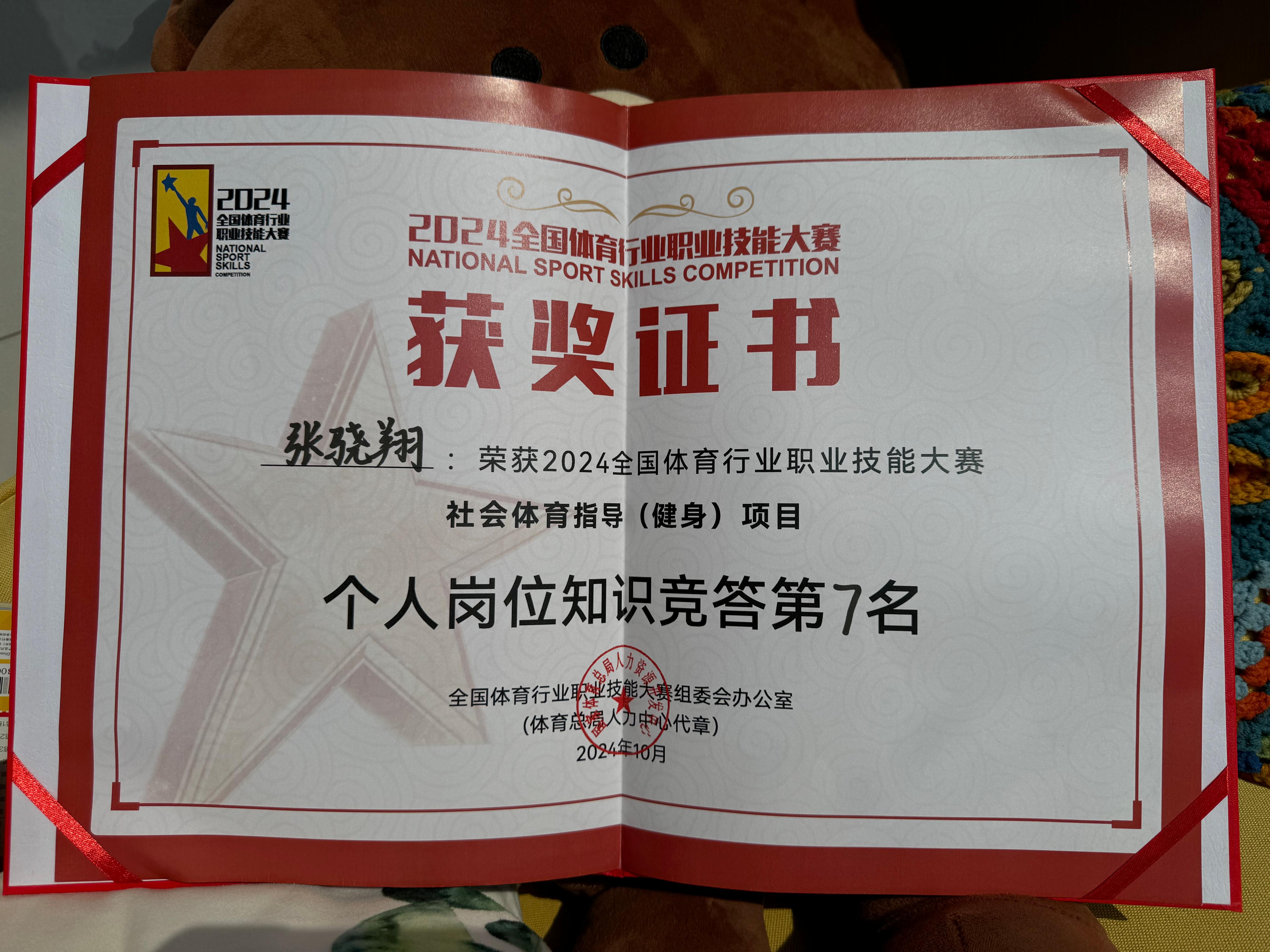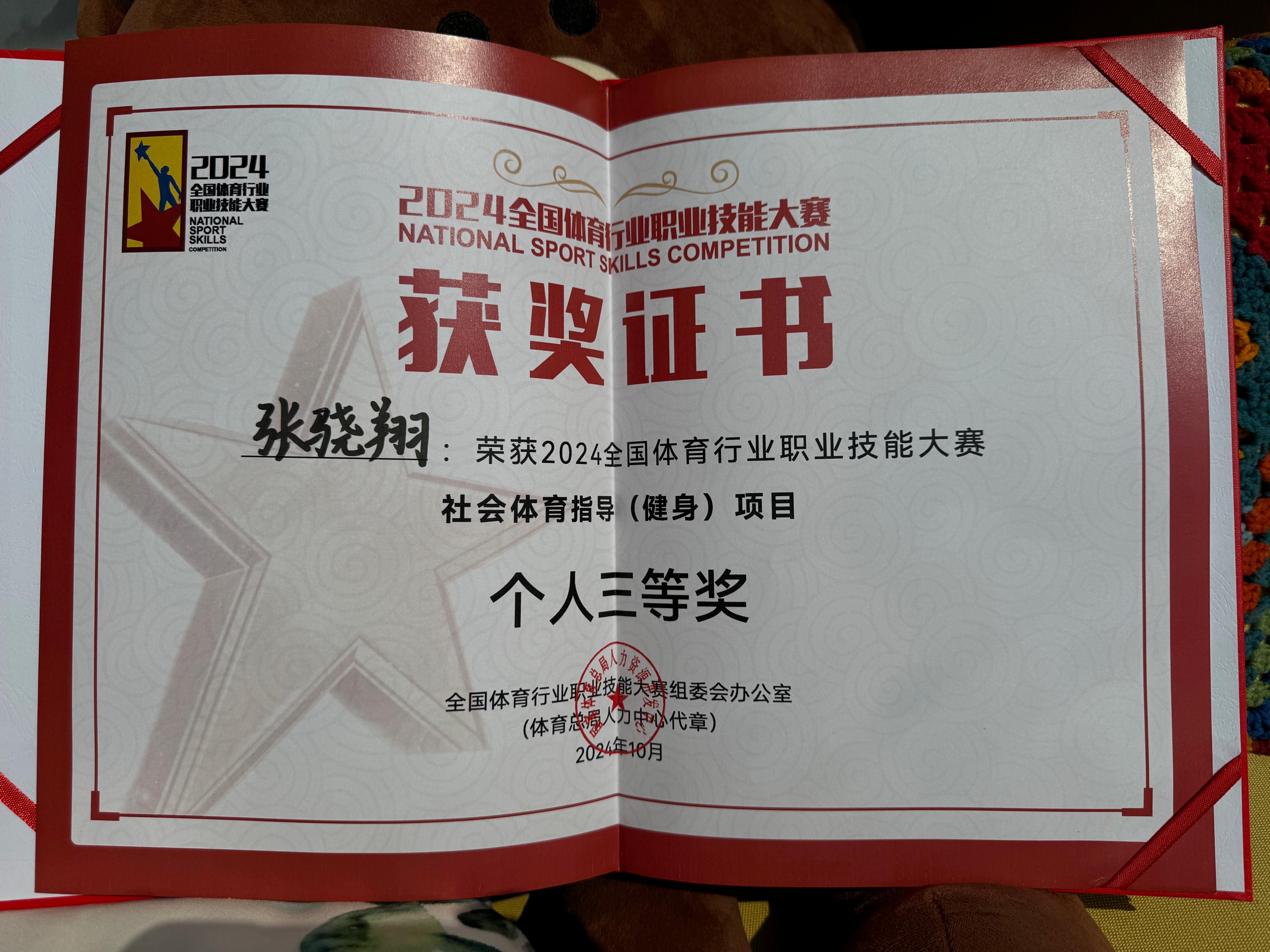 我校教师张骁翔在全国体育行业职业技能大赛中荣获佳绩