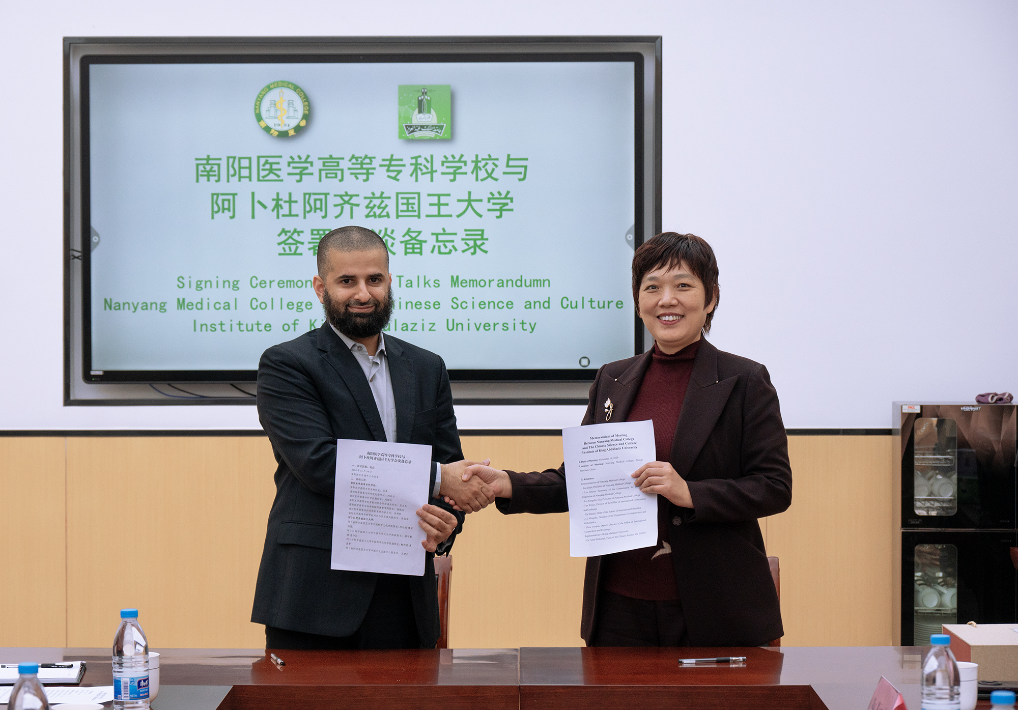 阿比德·穆罕纳德表示,阿卜杜阿齐兹国王大学一直对与中国高校的合作充满期待。南阳医专在中国传统中医药领域的专业性和在国际交流合作方面的独特理念给他们留下了深刻印象。希望以此次会谈为双方携手共进的起点,打造中沙教育和医疗合作的典范,为两国人民乃至世界人民的健康和福祉做出积极贡献。