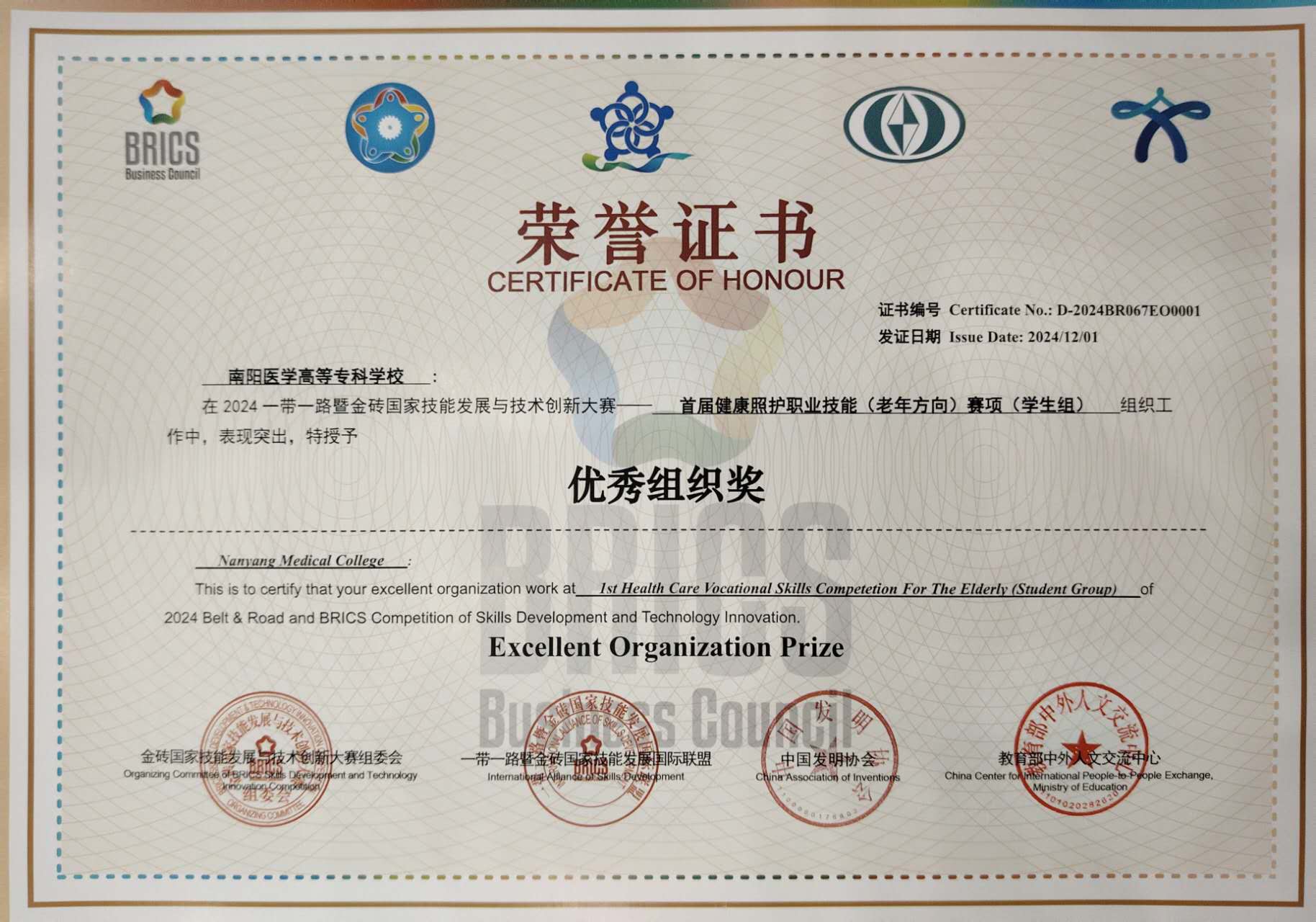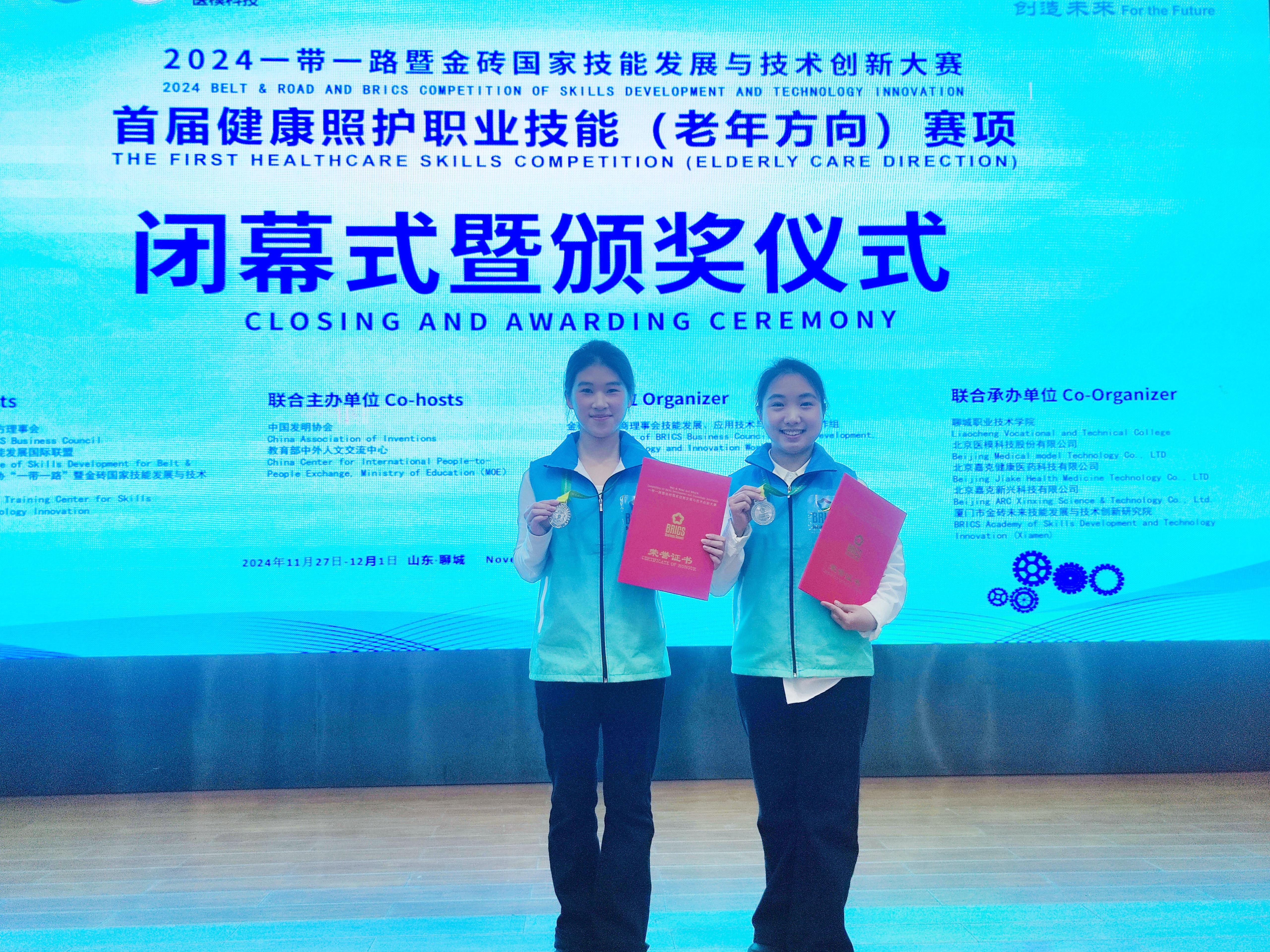 我校在2024年“一带一路”暨金砖国家技能发展与技术创新大赛首届健康照护职业技能竞赛全国总决赛中荣获银奖