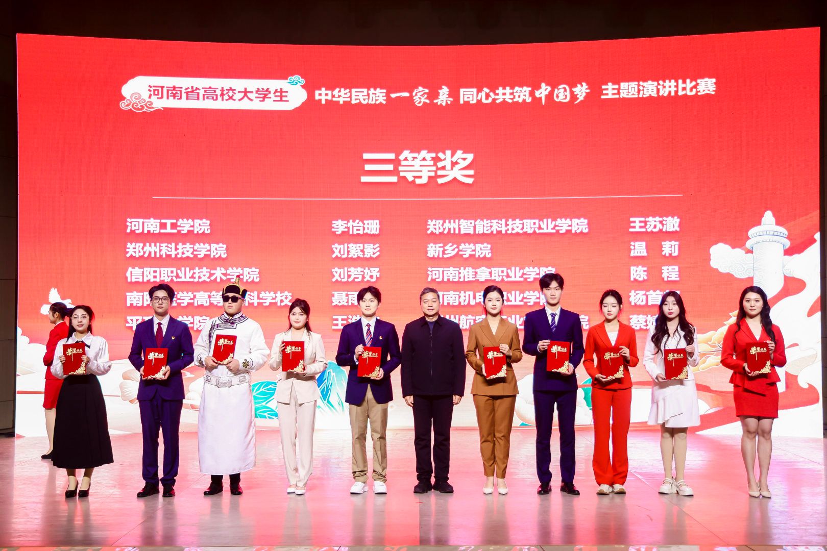 2018 年起,河南省已连续成功举办 6 届高校大学生中华民族一家亲主题演讲比赛。本届比赛省内151所高校选手进入复赛,45名高校选手入围决赛。我校国际教育学院聂雨彤同学凭借扎实的演讲功底和真挚的情感表达,最终获得三等奖的好成绩,展现出我校大学生良好的专业素养和精神风貌。