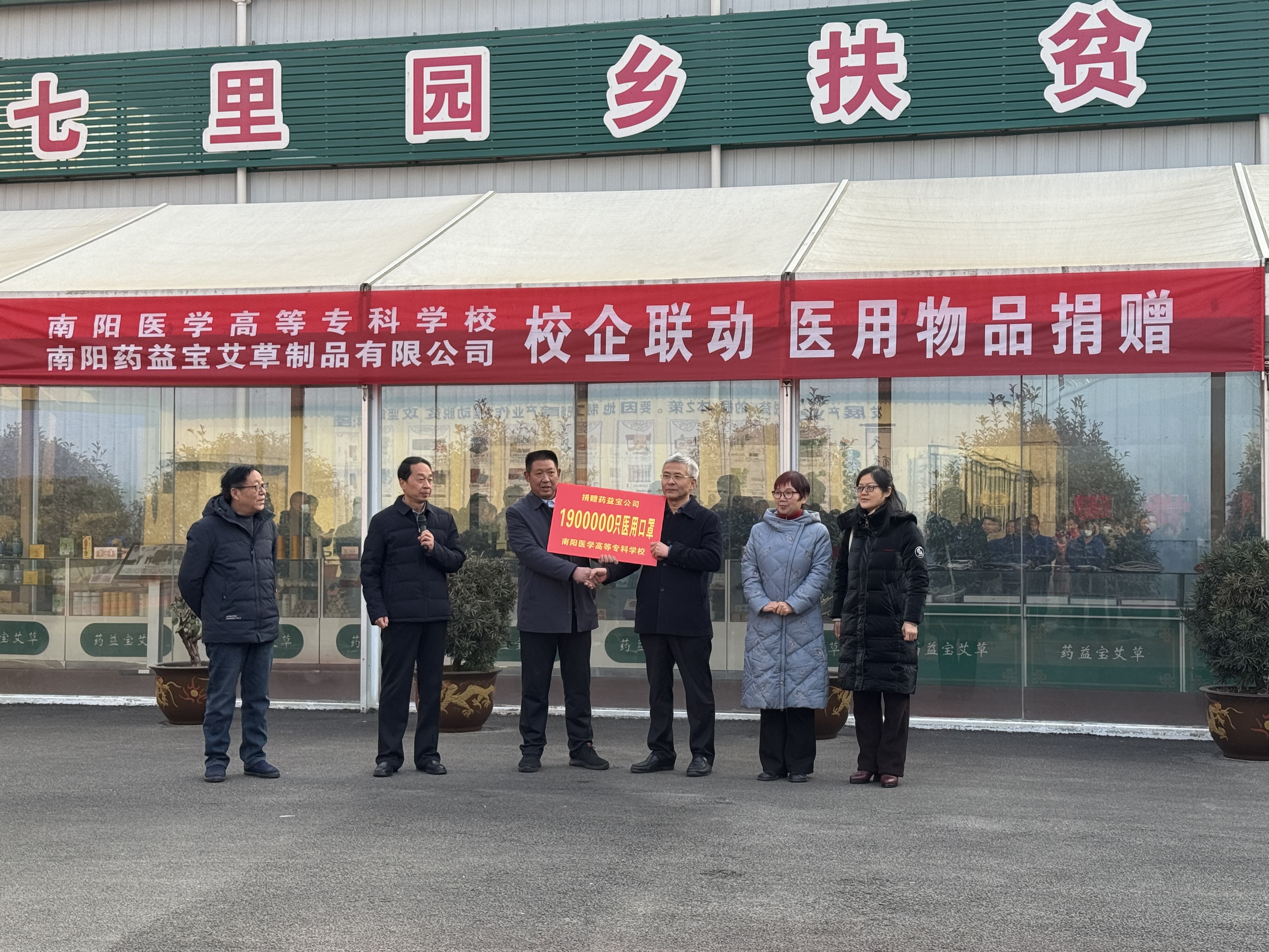 本网讯(文/继续教育学院 刘涛)1220日,南阳医专副校长郭延东、刘荣志带领总务处长刘洋、艾产业学院院长陈春华、副院长杨媛媛向药益宝艾草制品有限公司捐赠一批医用物品,助力企业发展,用实际行动传递了社会正能量。