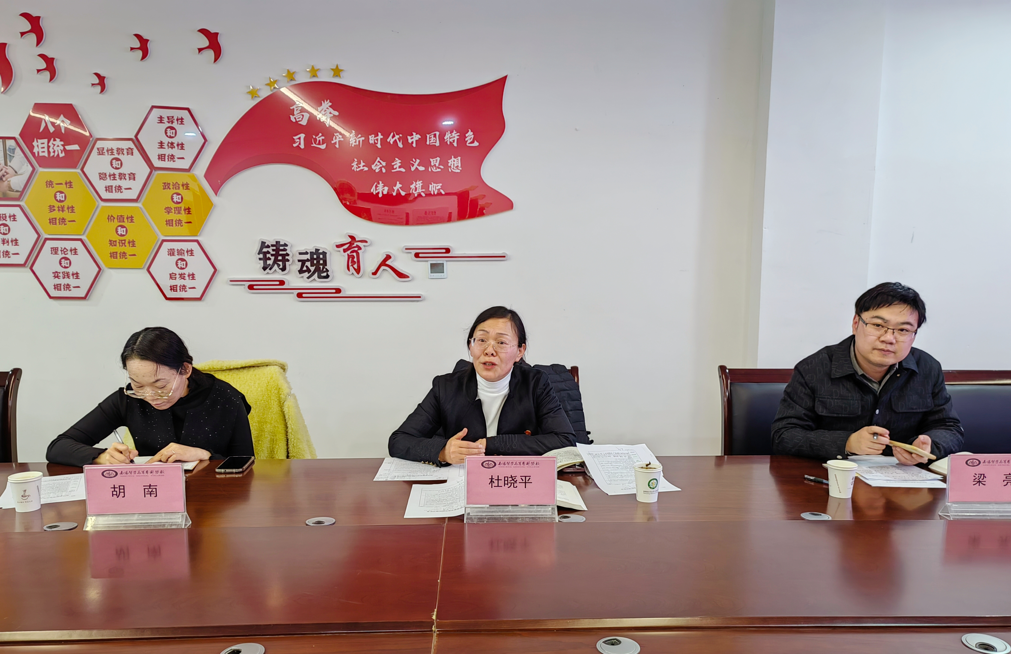 本网讯(文/马克思主义学院 刘蕾)3月5日下午,马克思主义学院在仲景文化中心五楼会议室组织思政课教师开展《思想道德与法治》课集体备课。校党委委员、工会主席杜晓平出席会议,教务处、教学评估与质量监控中心、马克思主义学院教研室专兼职教师参加集体备课会议。会议由马克思主义学院院长李明哲主持。