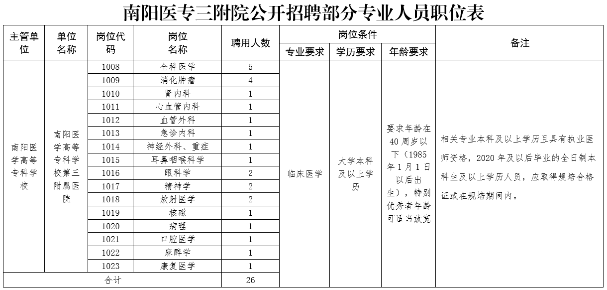 2.南阳医专三附院公开招聘部分专业人员职位表